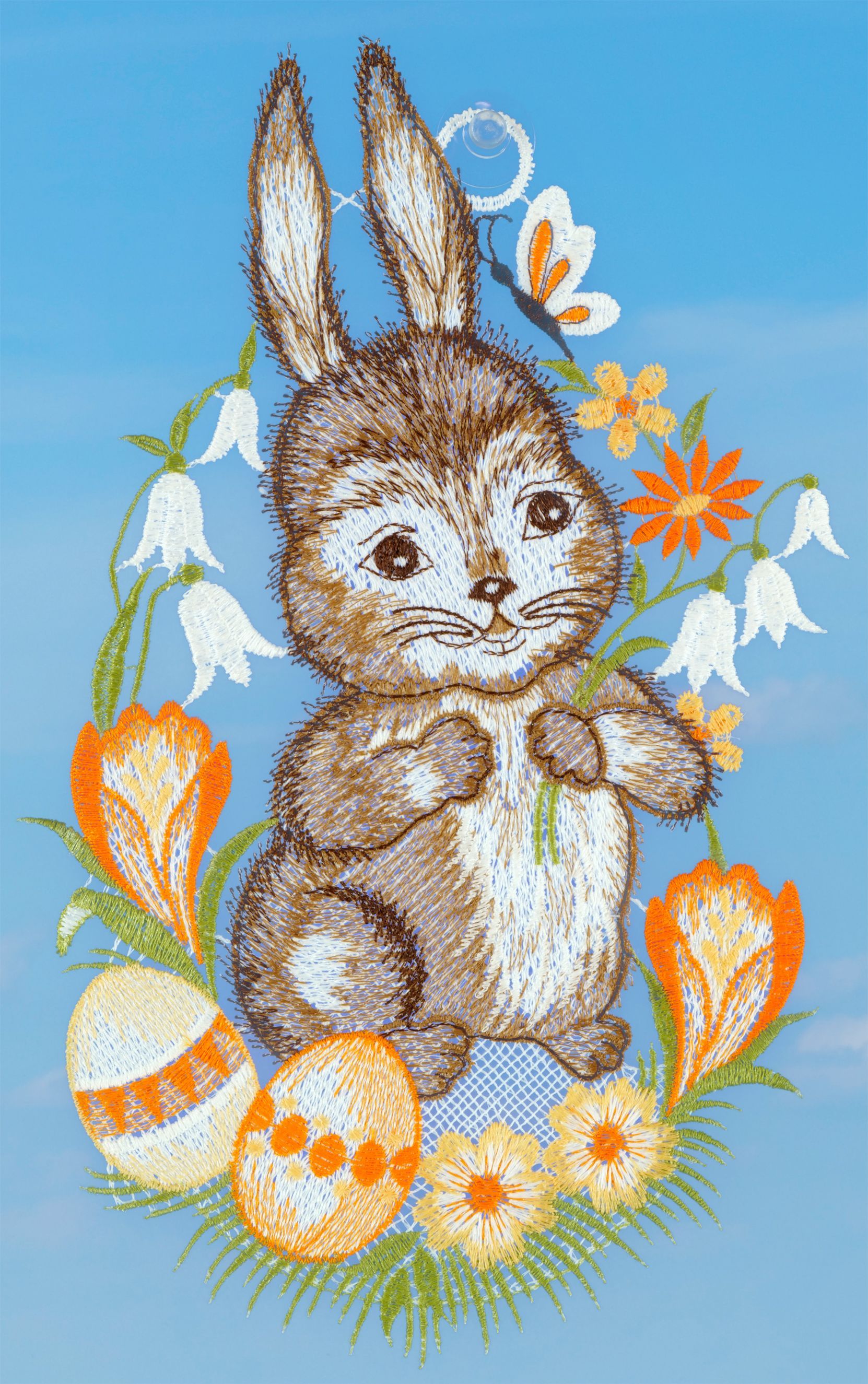 Plauener Spitze Fensterbild Ostern Häschen 27 cm Fensterdekoration Osterdekoration Fe
