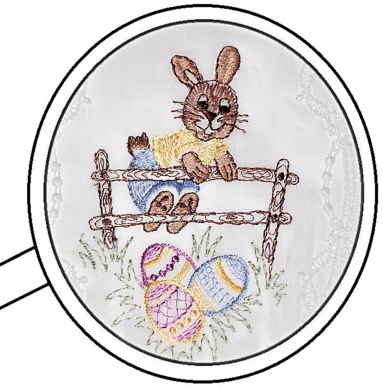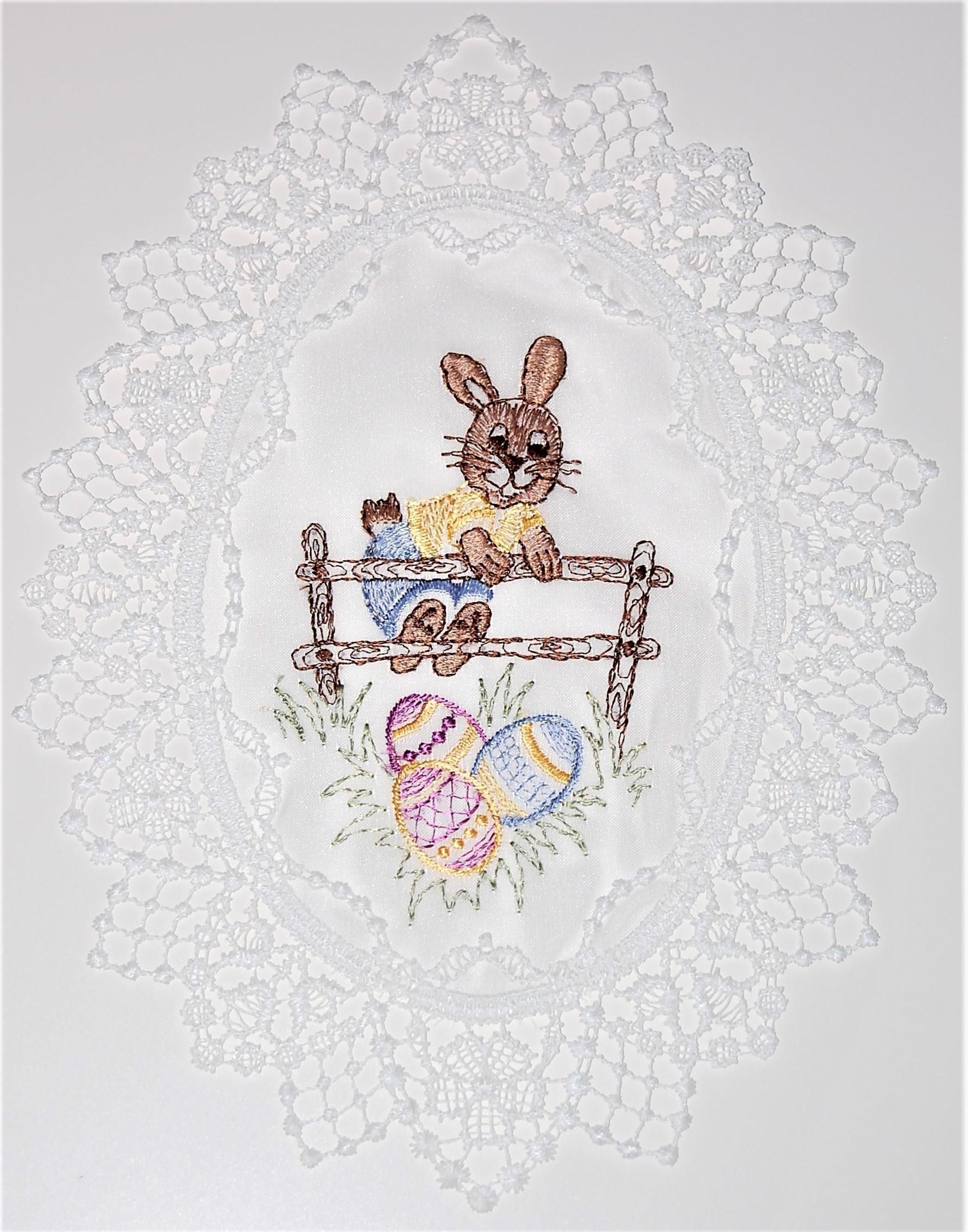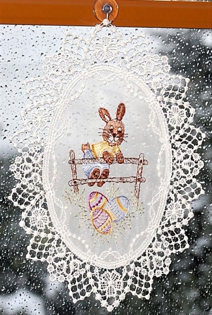 Plauener Spitze Fensterbild Ostern Hase Zaun Stickerei Voile Fensterdekoration Osterd