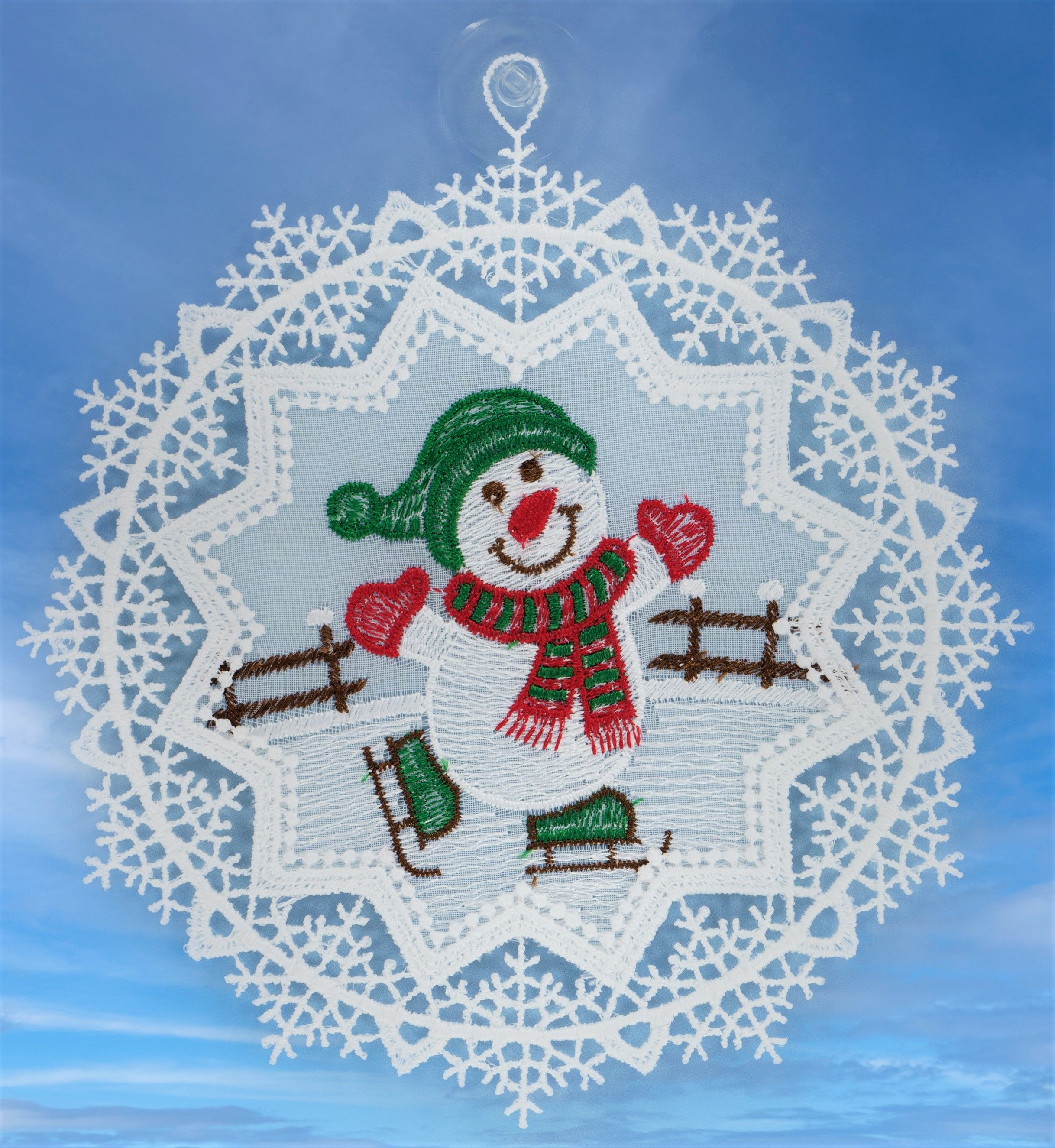 Plauener Spitze Fensterbild Weihnachten Schneemann Weiß Fensterdekoration Winter Best