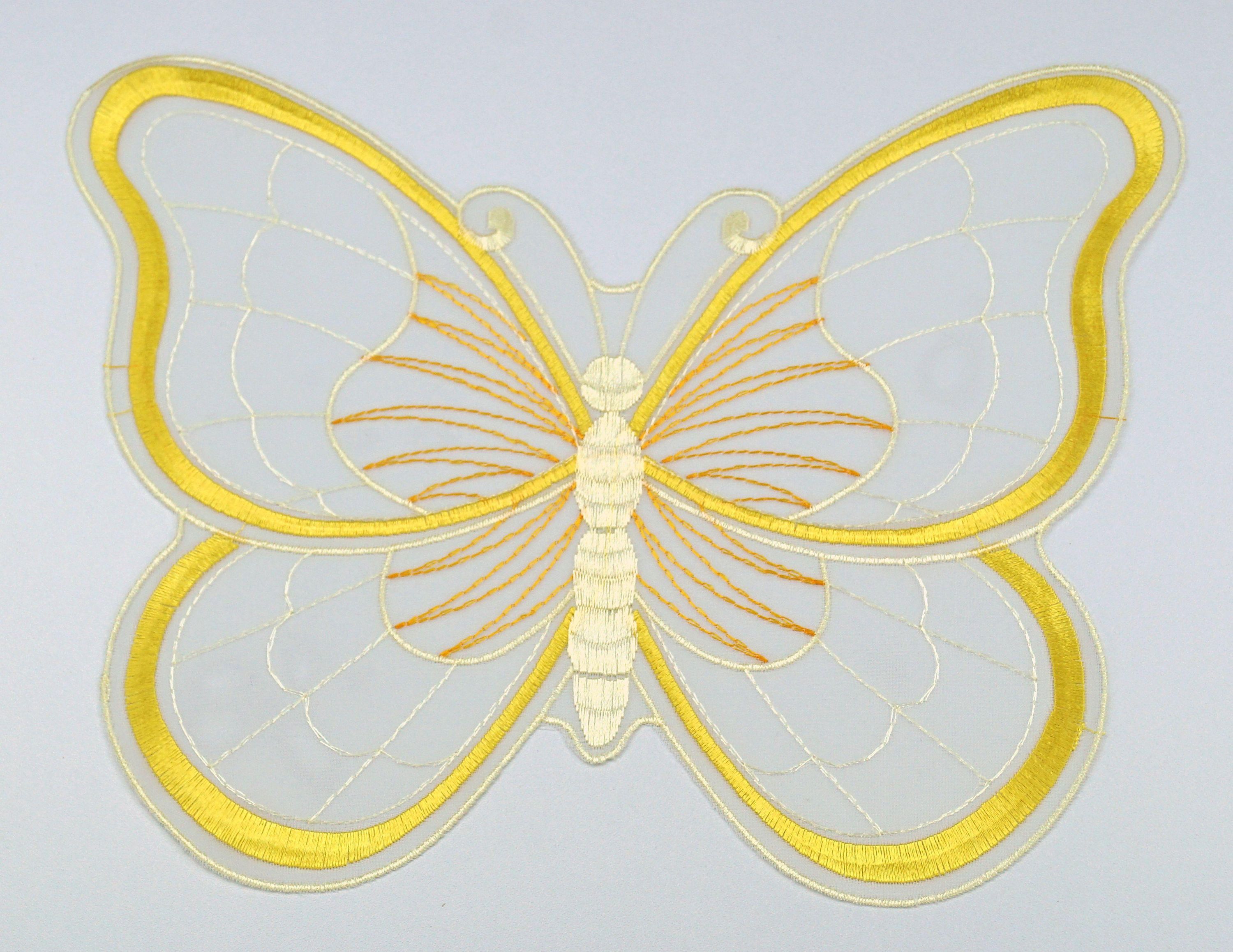 Plauener Spitze Schmetterlinge Organza Deckchen 2er Set Tischdecken Tischdeko