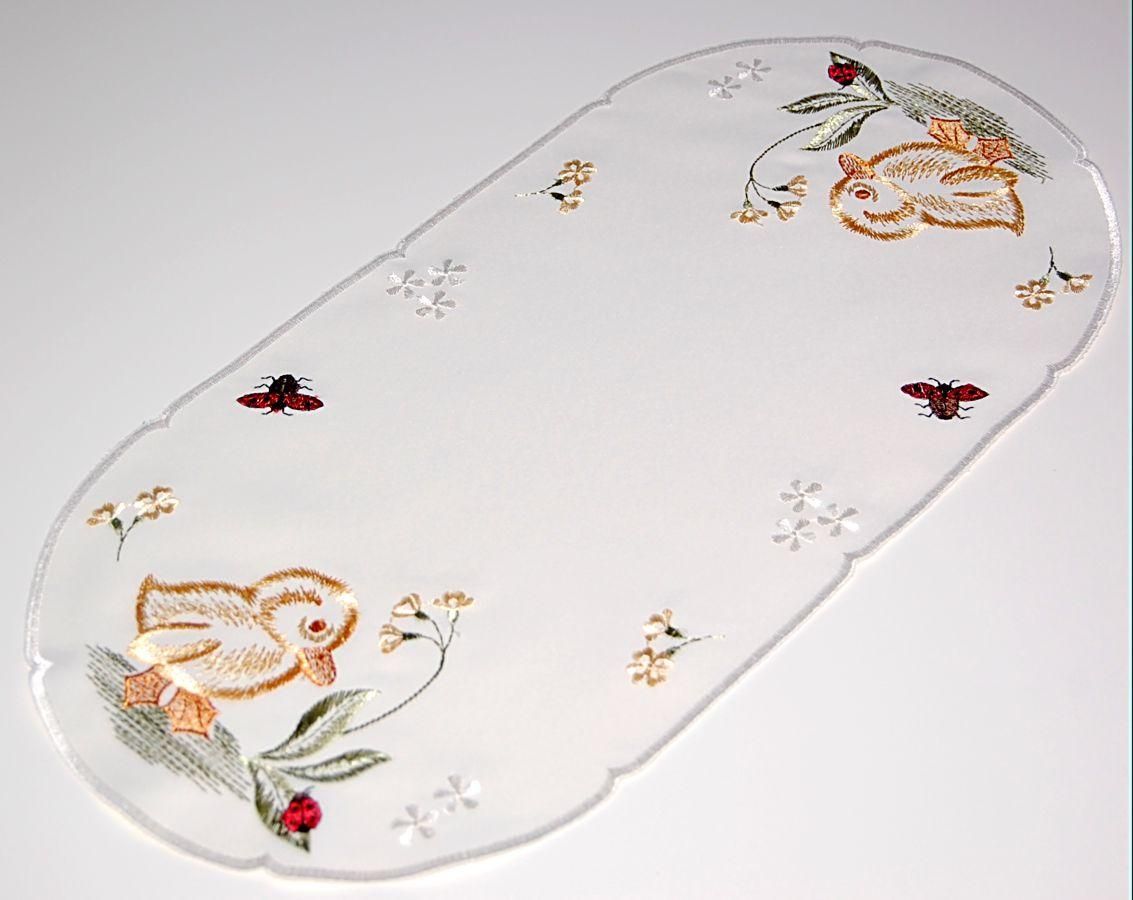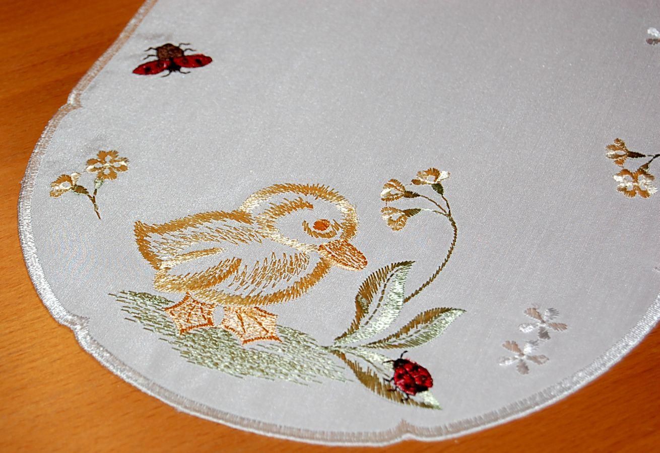 Plauener Spitze Tischläufer Ostern Oval 22x45 Stickerei Küken Osterdeckchen Osterdeko