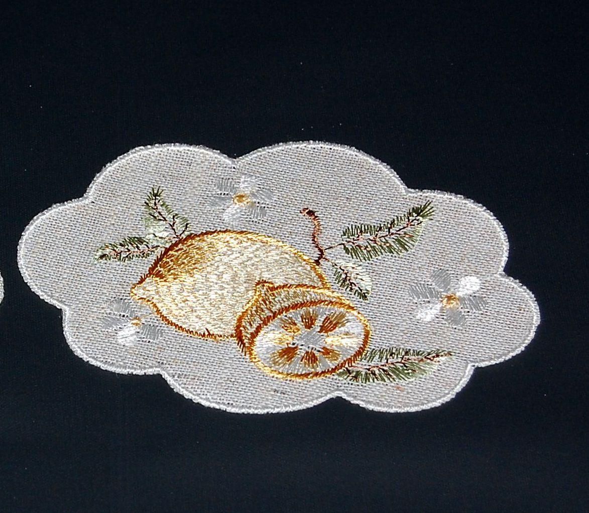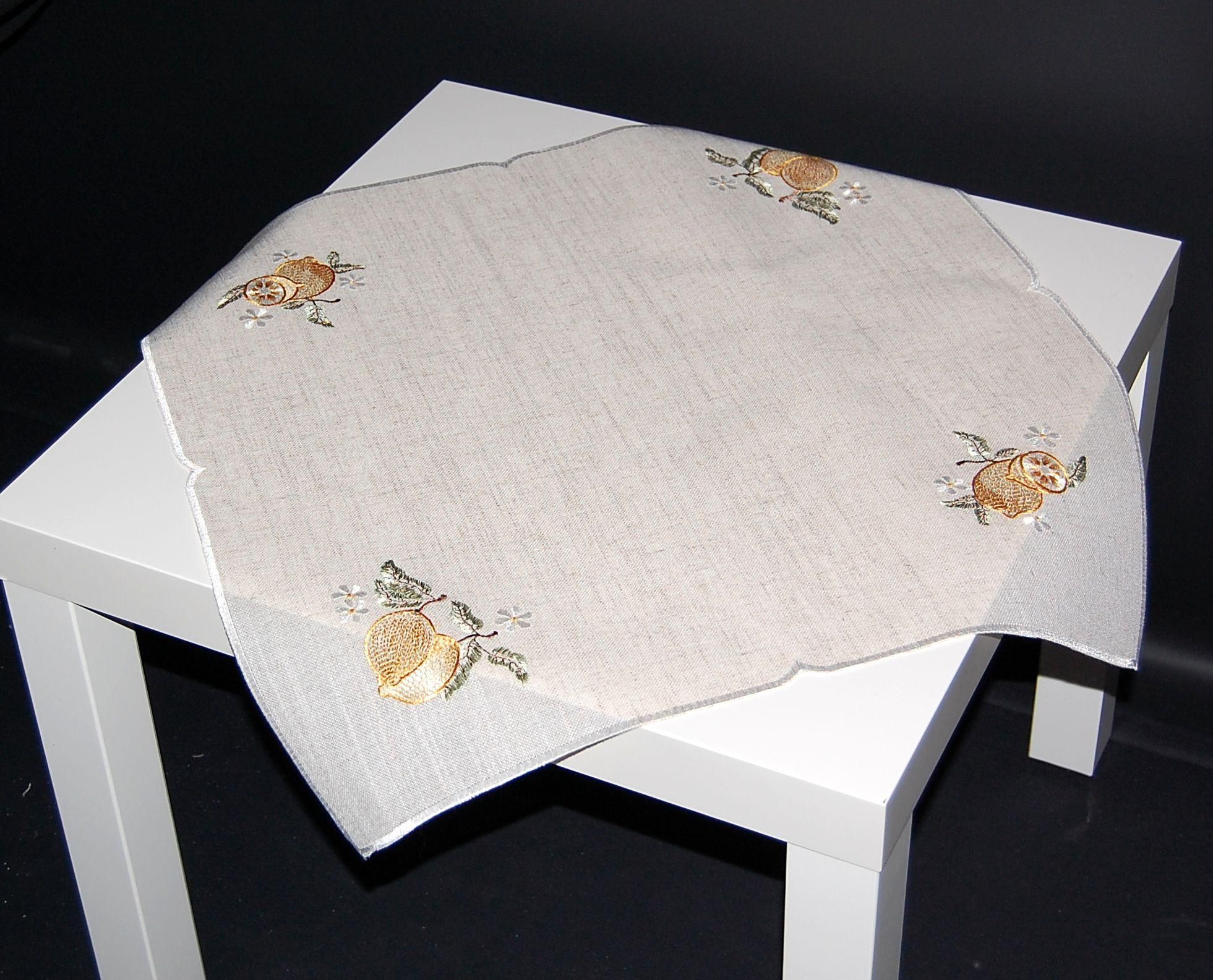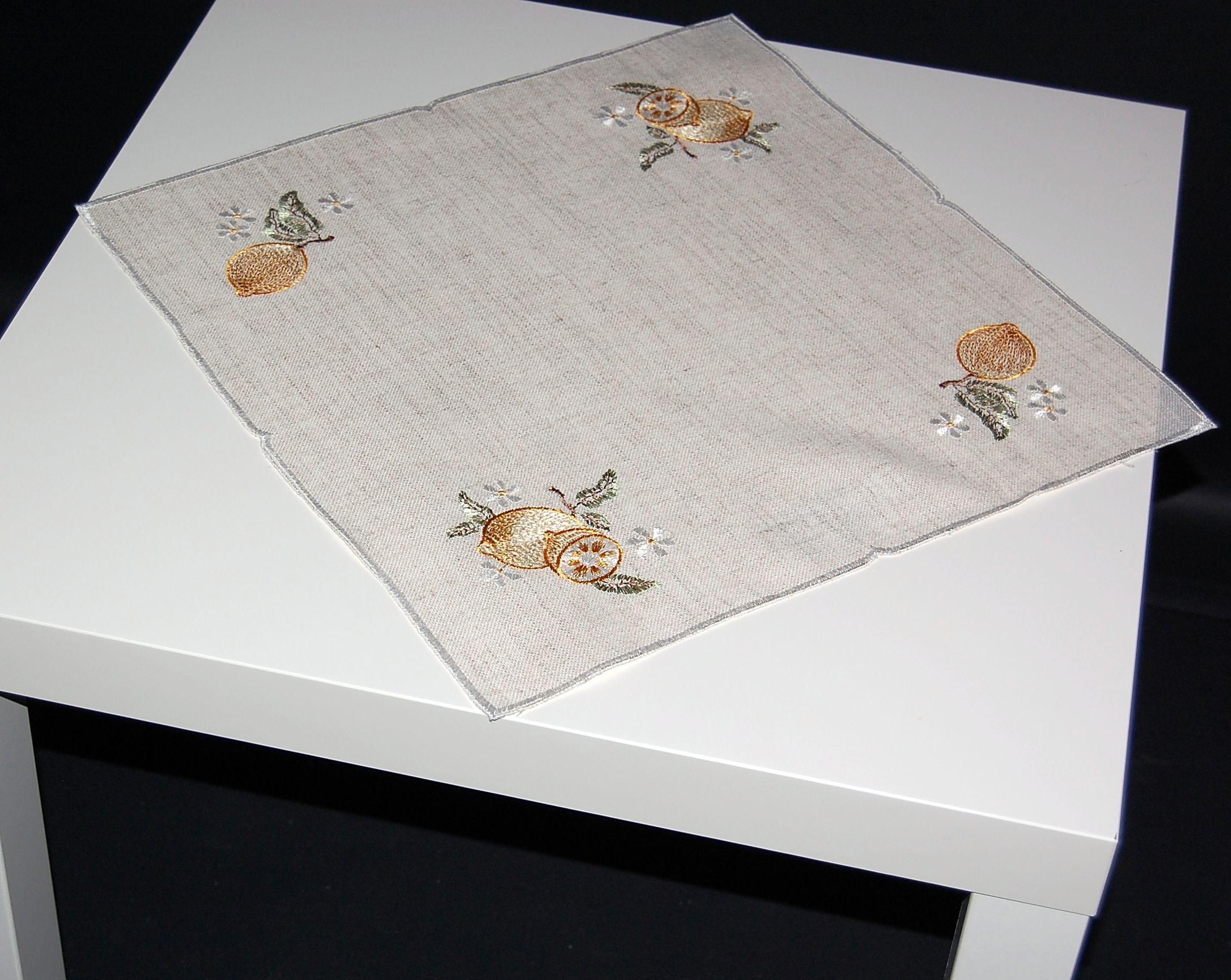 Plauener Spitze Zitronen Beige Stickerei Gelb Tischwäsche Sommer Made in Germany