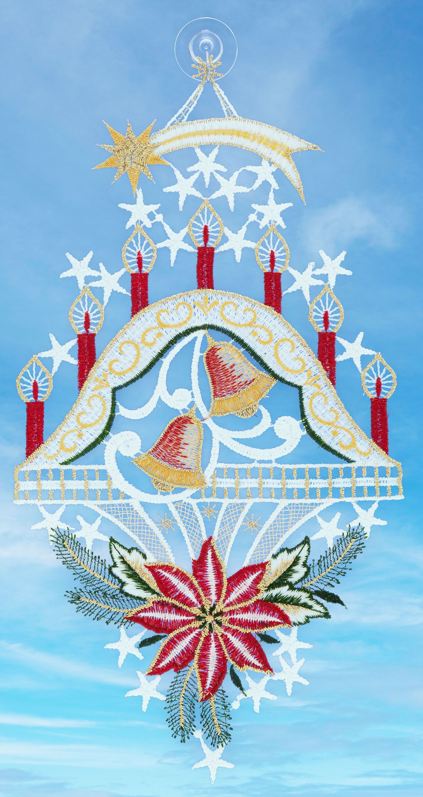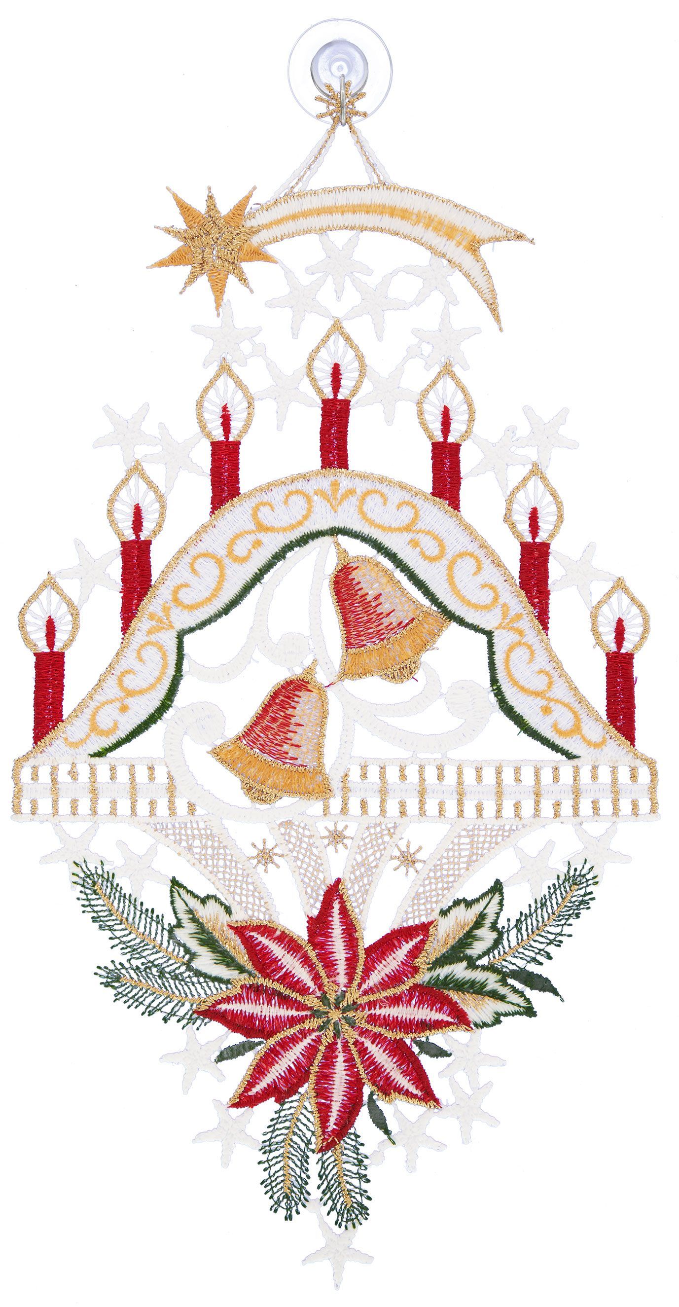 Plauener Stickerei Fensterbild Weihnachten Spitze Fensterdekoration Schwibbogen 29 cm