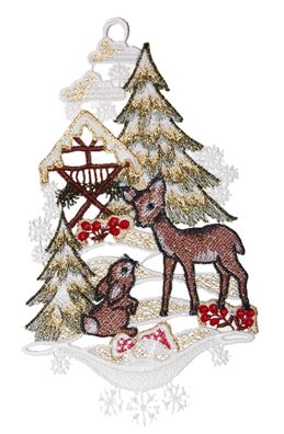 • Fensterbild Weihnachten Spitze Fensterdekoration Plauener Stickerei Futterkrippe 28 c