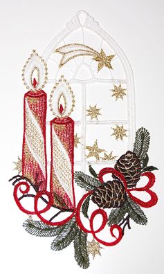 • Fensterbild Weihnachten Spitze Fensterdekoration Plauener Stickerei Kerzen 27 cm
