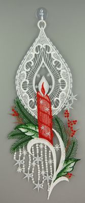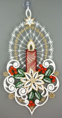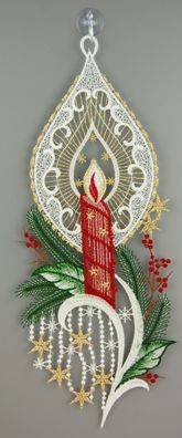 • Fensterbild Weihnachten Spitze Fensterdekoration Plauener Stickerei Kerze 29 cm