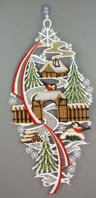 • Fensterbild Weihnachten Spitze Fensterdekoration Plauener Stickerei Winter 32 cm