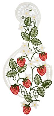 • Fensterbild Spitze Fensterdekoration Frühling Sommer Plauener Stickerei Erdbeeren