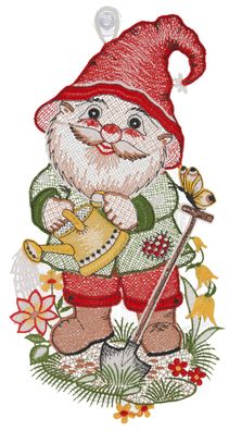 • Fensterbild Sommer Spitze Fensterdekoration Plauener Stickerei Gartenzwerg 31 cm