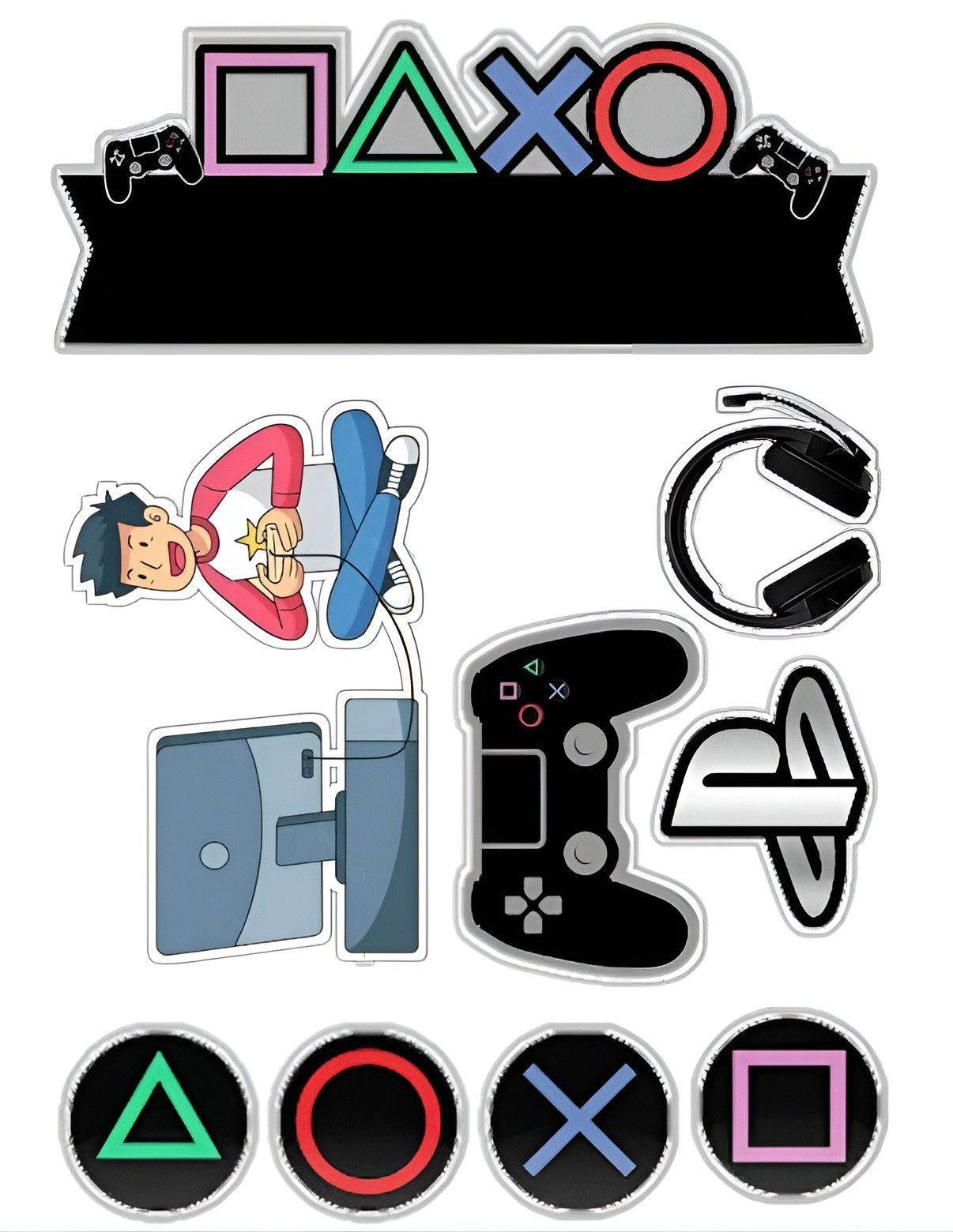 Play Station Essbar PS4 PS5 Tortenaufleger Torte Geburstag Zuckermasse + NAME p07