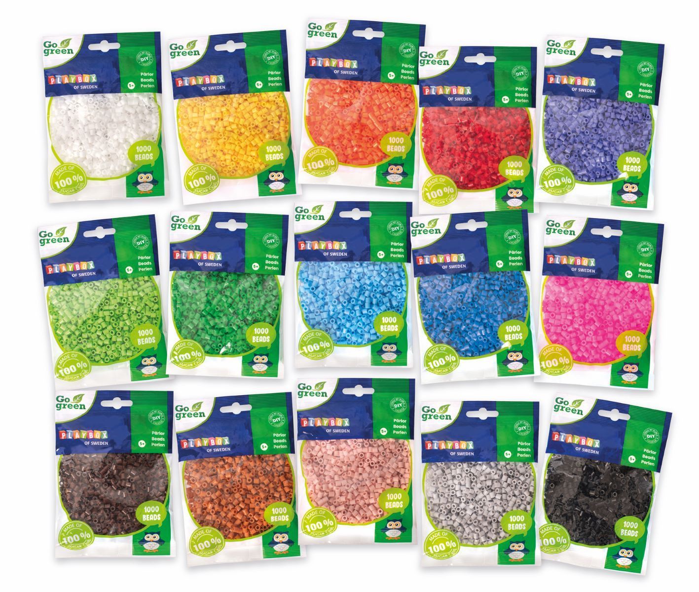 Playbox Bügelperlen ´Go Green´ (aus Zuckerrohr) 1000 Stück midi in Einzelfarben