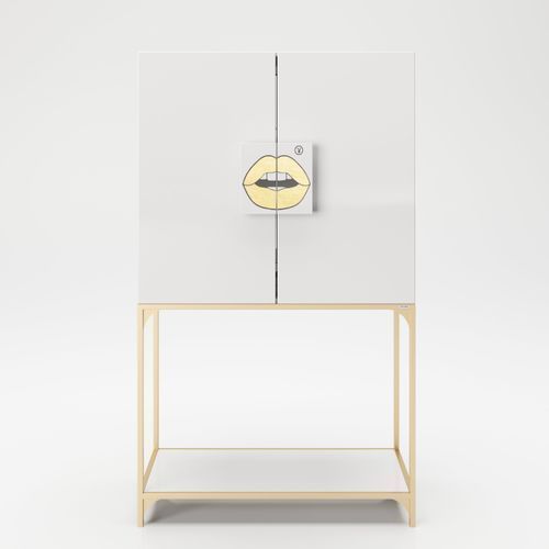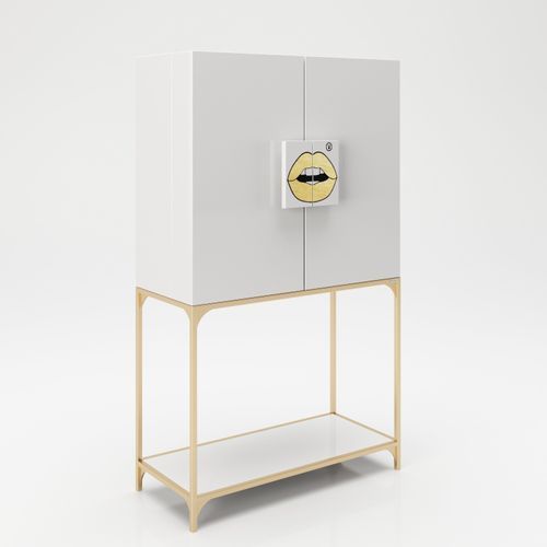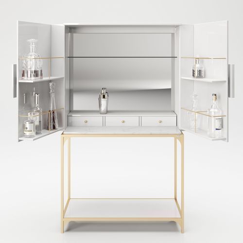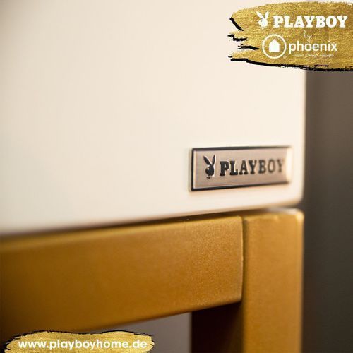 Playboy - Bar "BRANDI" mit viel Stauraum, Spiegel-Rückwand, LED Beleuchtung