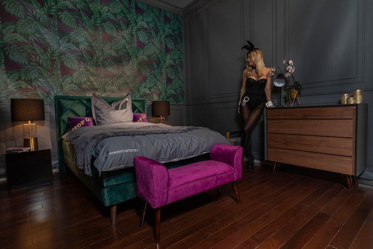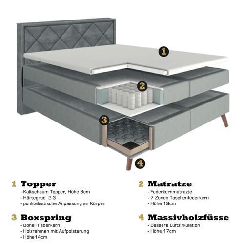 Playboy - Boxspringbett AUDREY, 180x200, Samtstoffbezug inkl Topper, Matratze, Grün