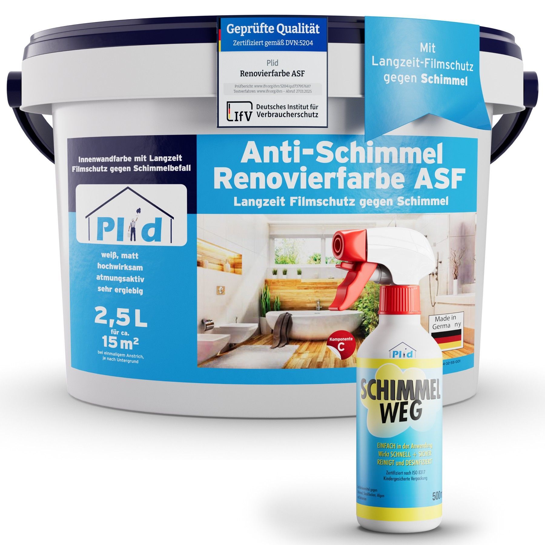 plid® Anti-Schimmelfarbe Innen Weiß / Renovierfarbe gegen Schimmel für feuchte Räume