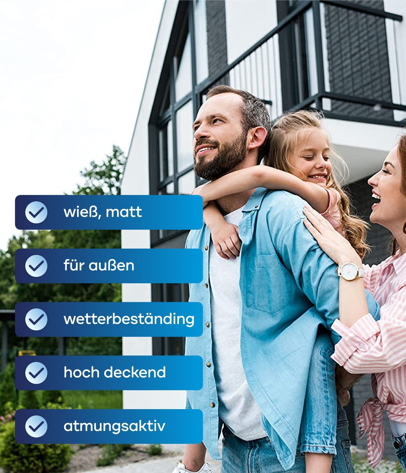 • Alpina 2,5 L. Fassaden Farbe, weiße matte Fassadenfarbe, wetterbeständig