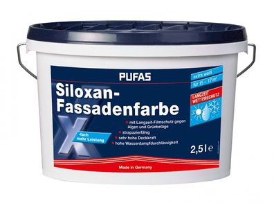 • Pufas Siloxan-Fassadenfarbe 2,5 Liter weiß