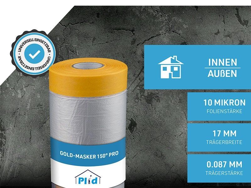 plid Gold-Masker 150° Pro, Tape, Klebeband, Malerband, Abdeckband, UV- Resistent