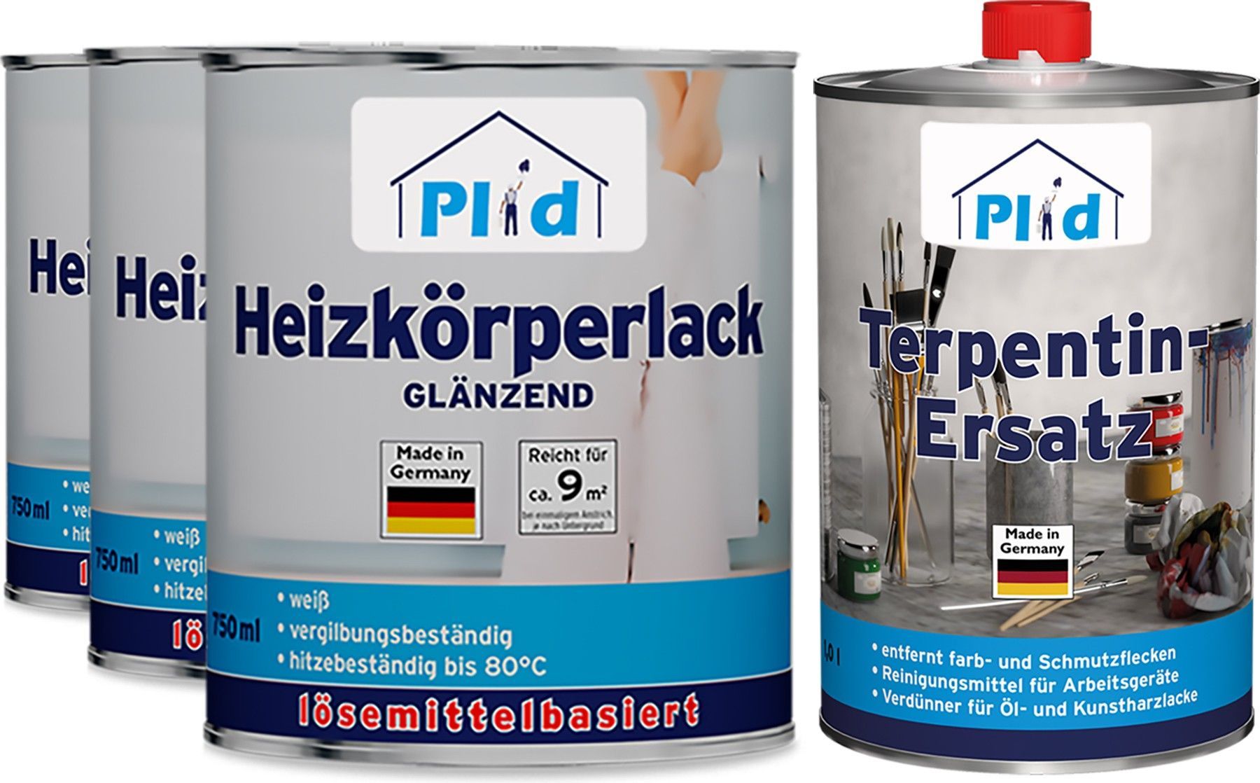 plid® Heizkörperlack lösemittelhaltig, Glänzend Weiß + Terpentinersatz Thermolack 80°