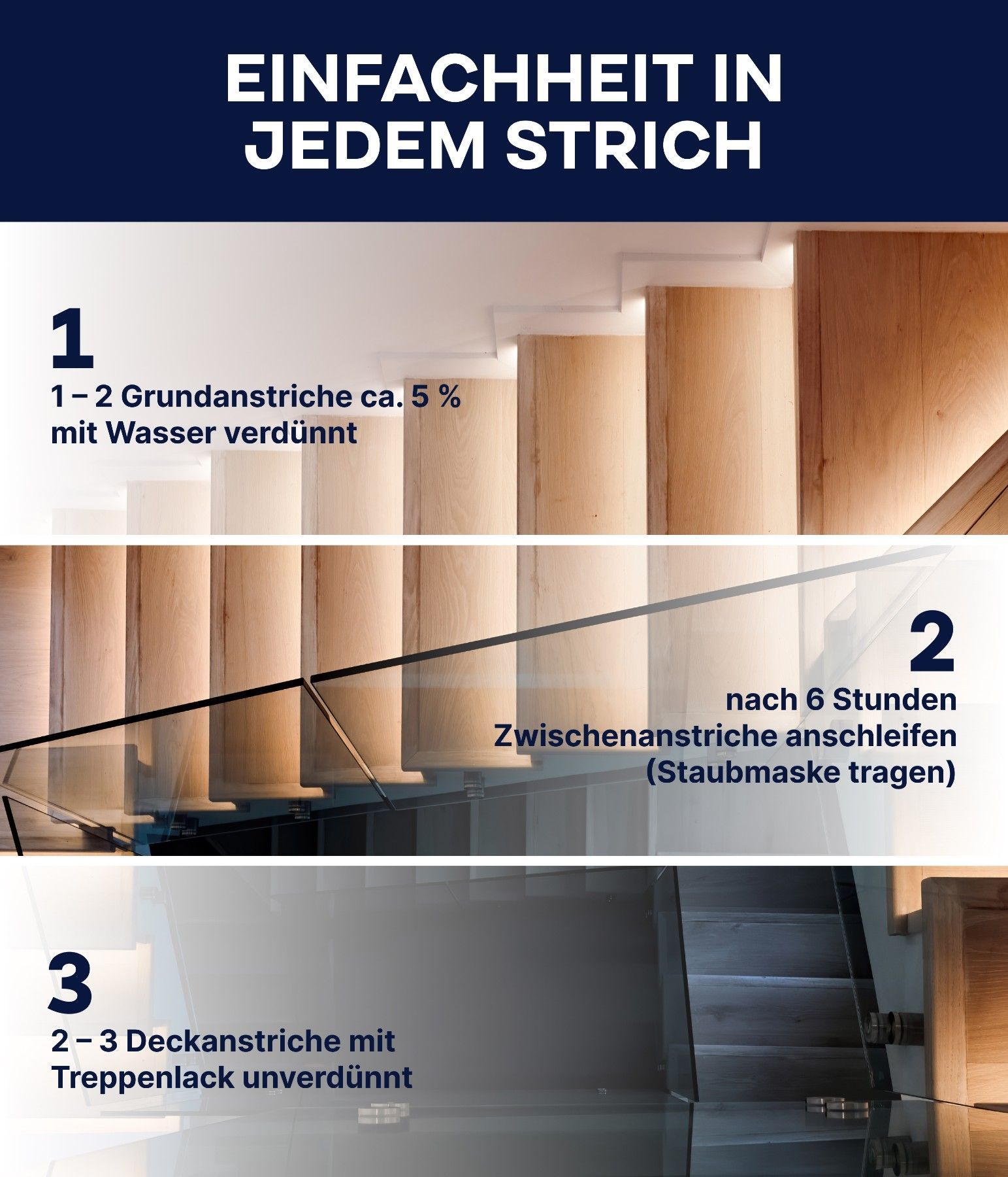 plid® Treppenlack Farblos + Lackierset / Treppensiegel Klarlack Holzlack