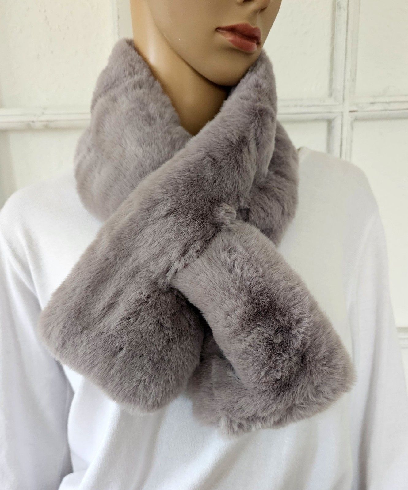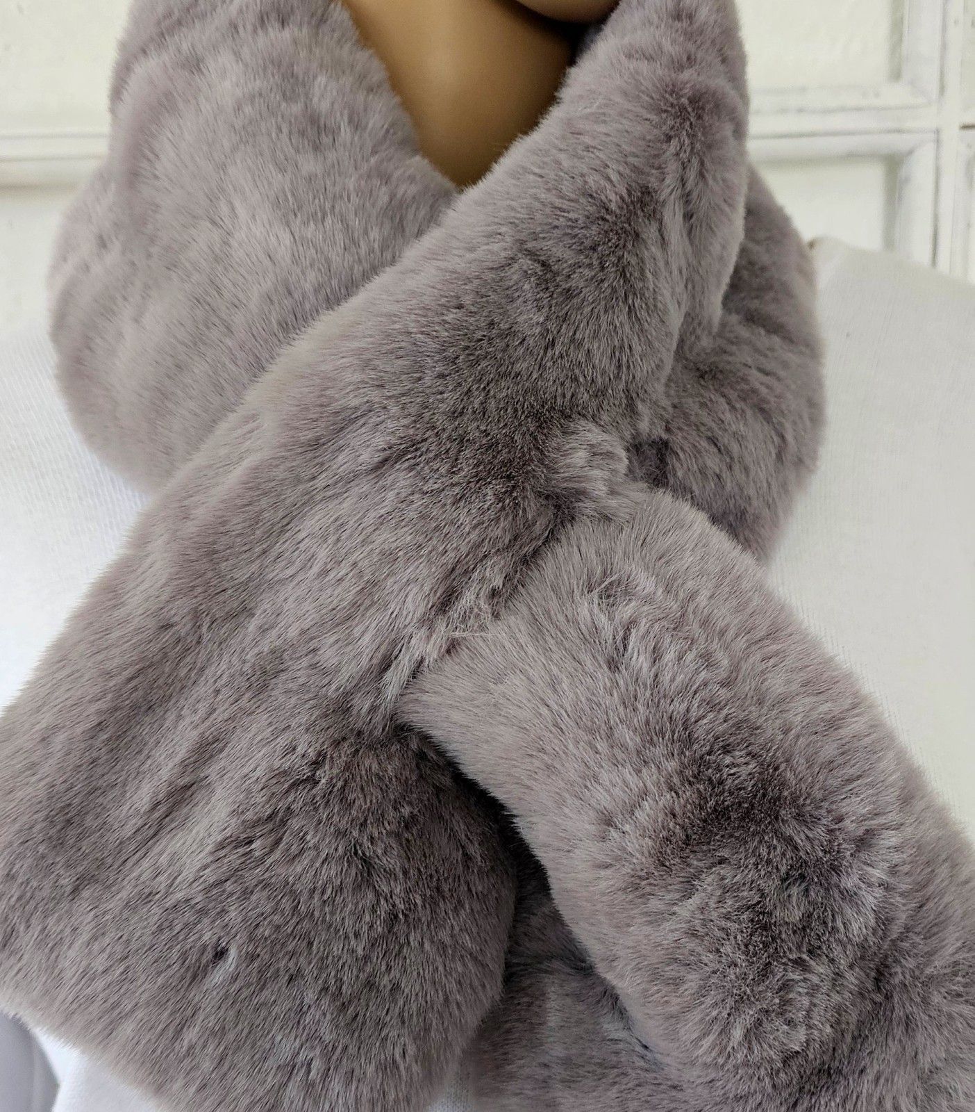 Plüsch Winter Schal Fellimitat Fake Fur kuschelig Kunstfell Steckschal warm Grau