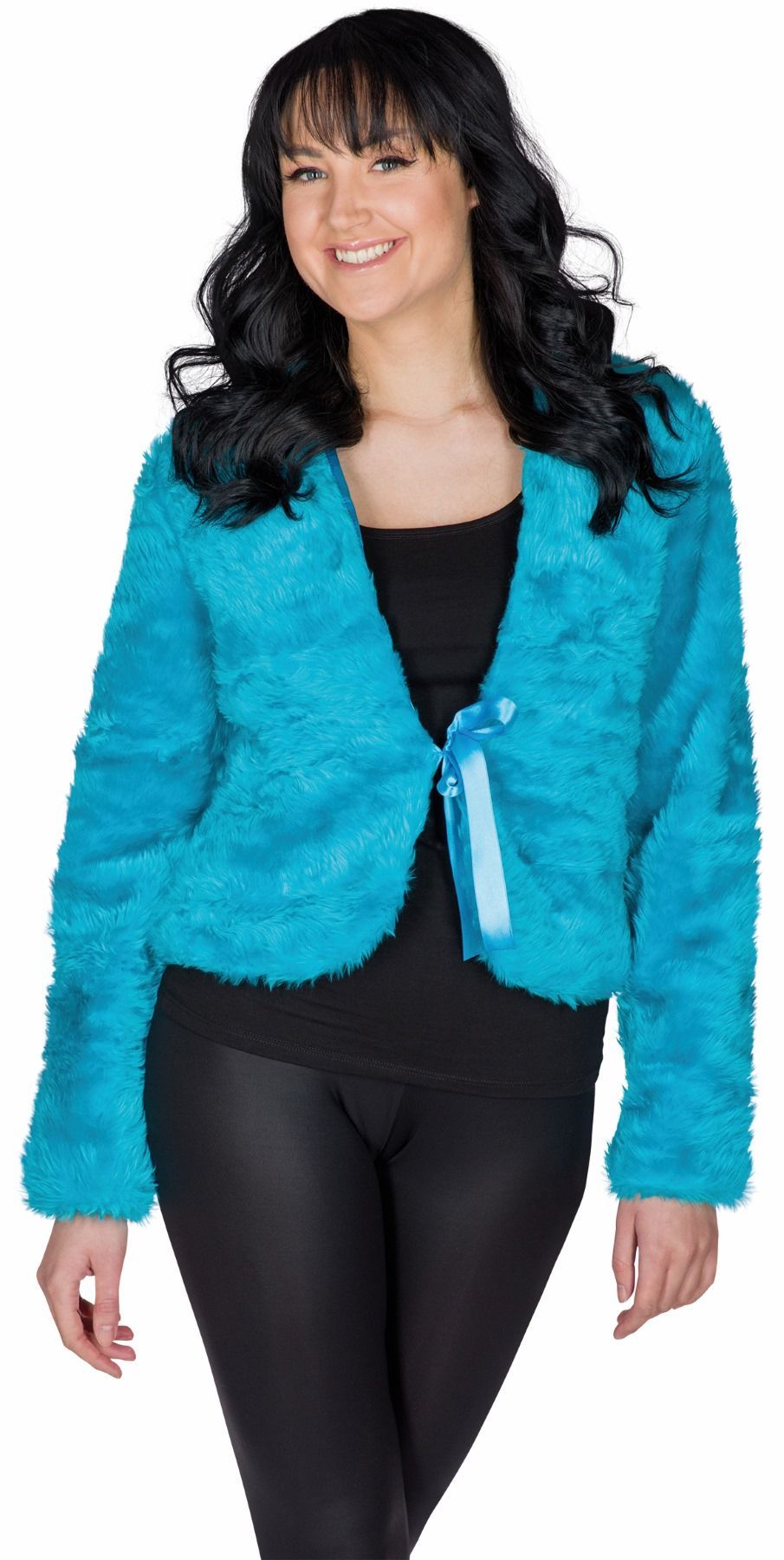 Plüschjacke Felljacke Damen türkis Gr.36-44 80er Bad Taste Karneval Fasching