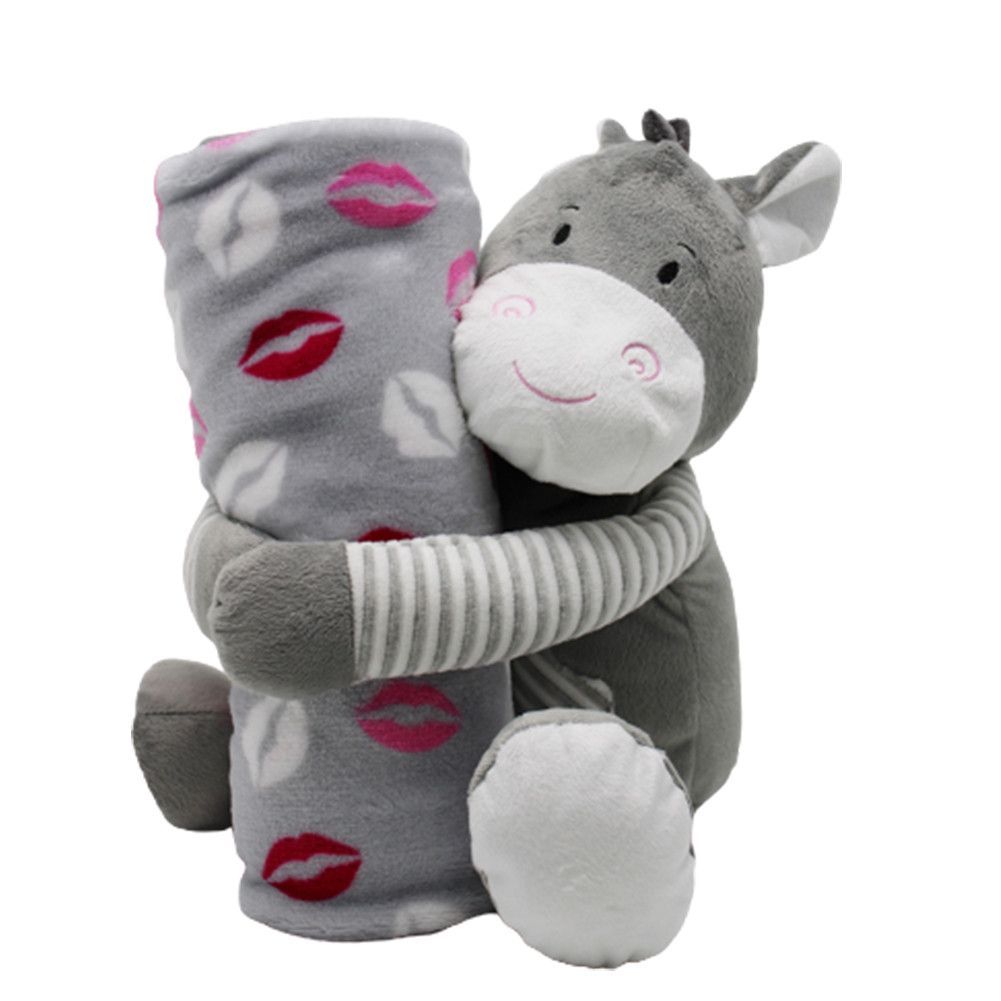 Plüschtier mit Decke 120x80cm mit Varianten Elefant, Hase, Giraffe, Esel