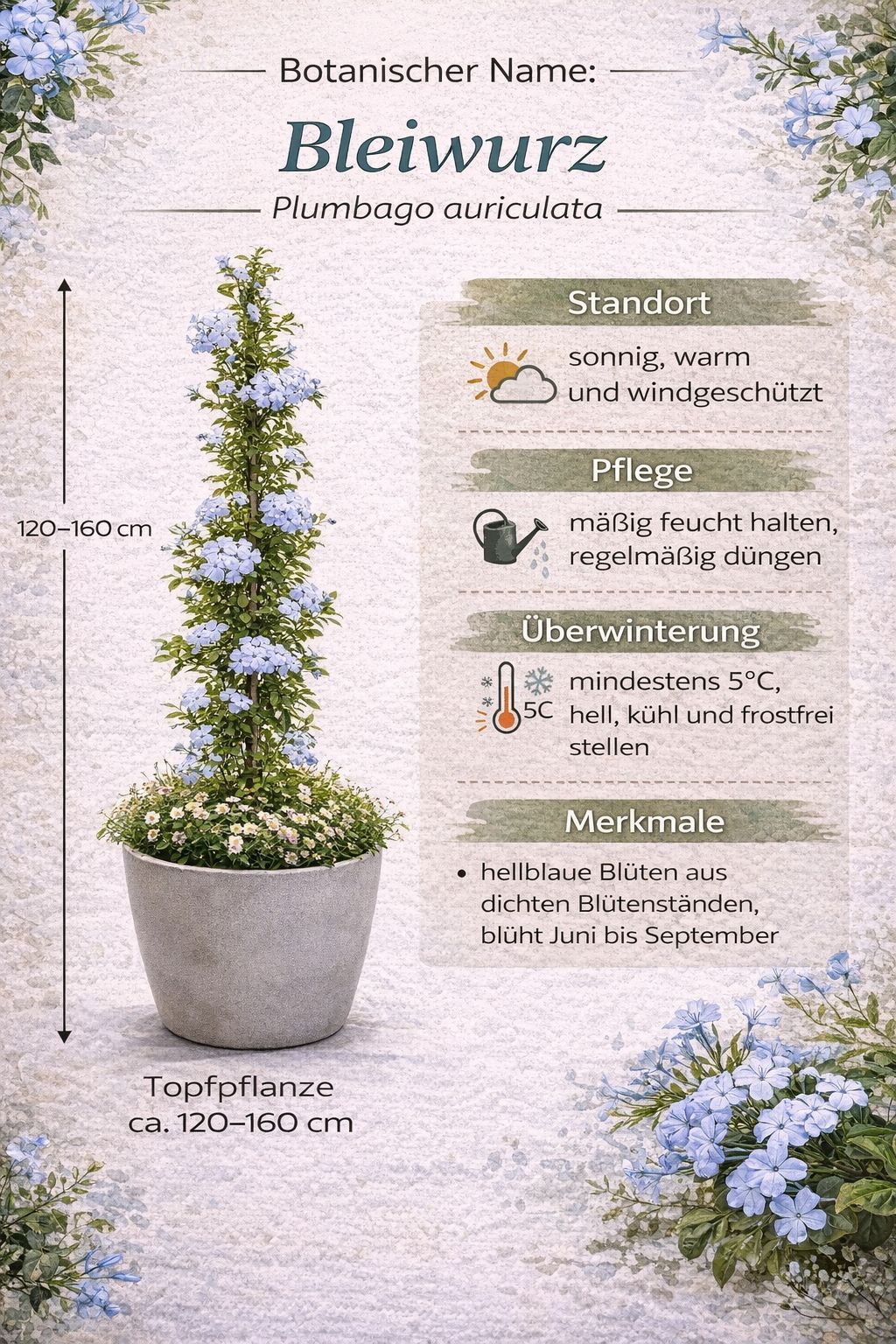 Plumbago auriculata 120-160 cm Blauer Jasmin Bleiwurz Pflanze Terrasse
