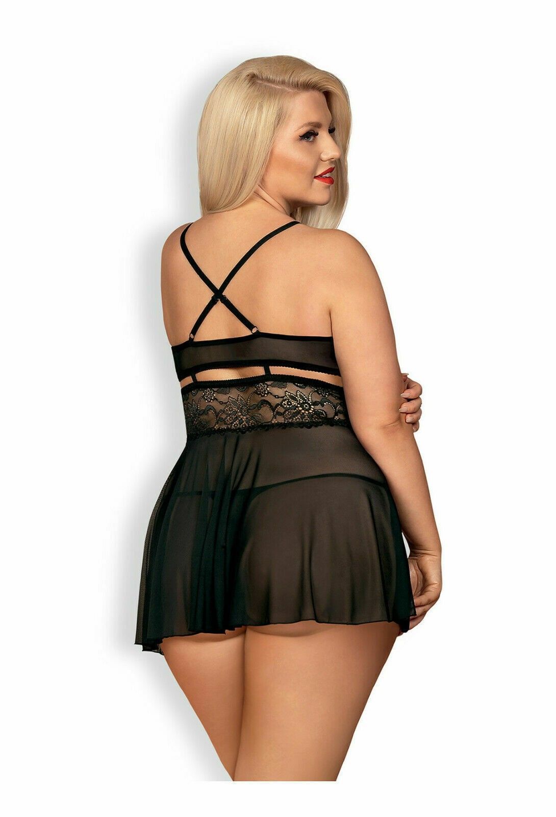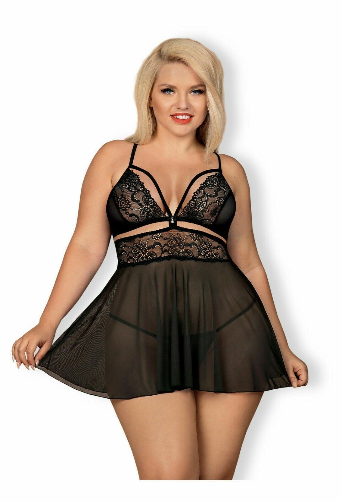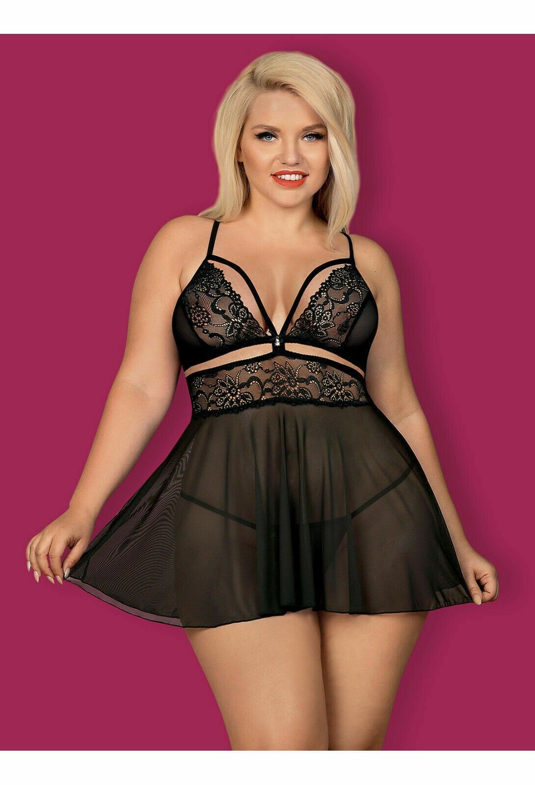 Plus Size Babydoll Schwarz Spitze Dessous Kleid Nachtwäsche String Gr. XXL