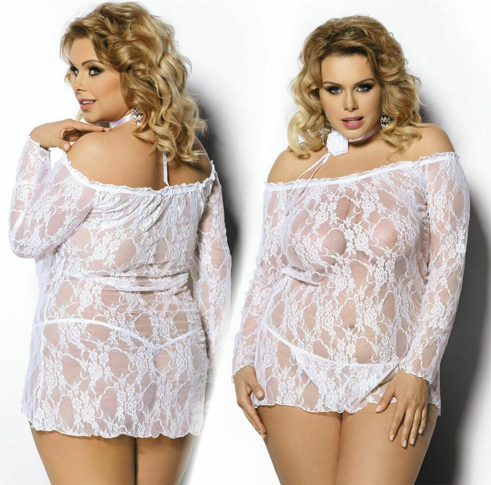 Plus Size Negligè Weiß Chemise Spitze Nacht Dessous Nachtkleid Übergröße 3XL/4XL