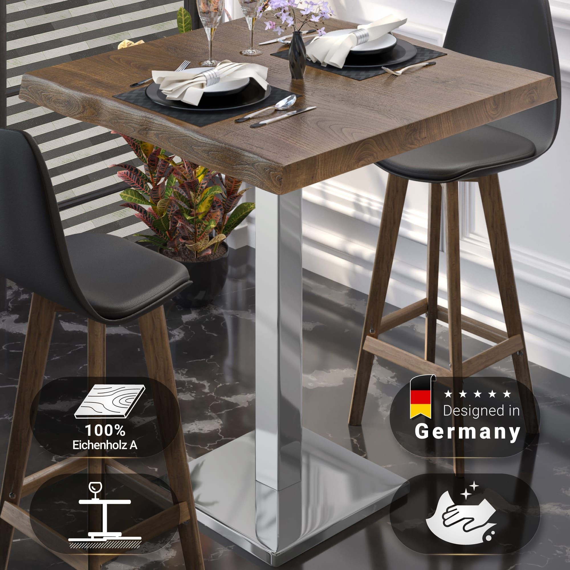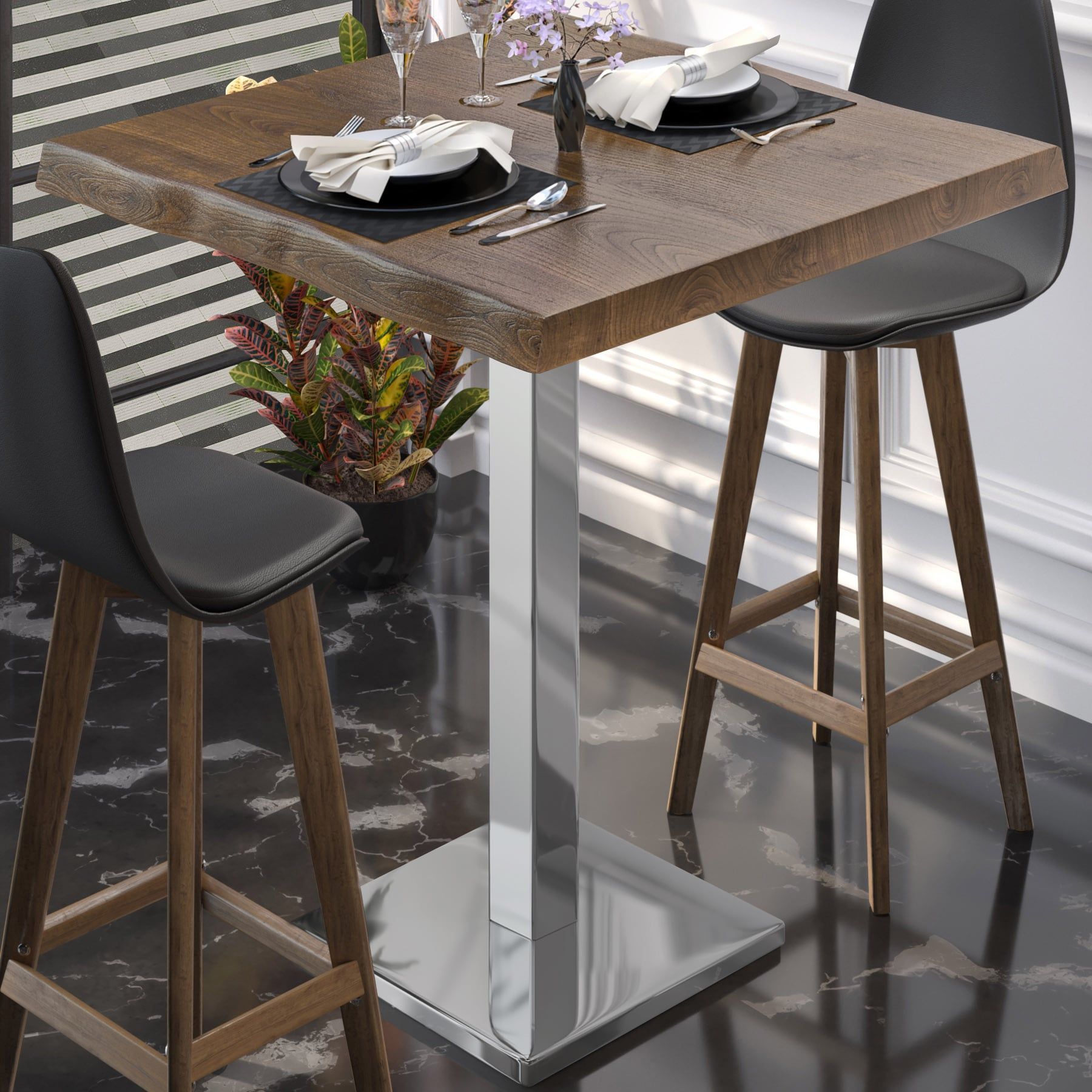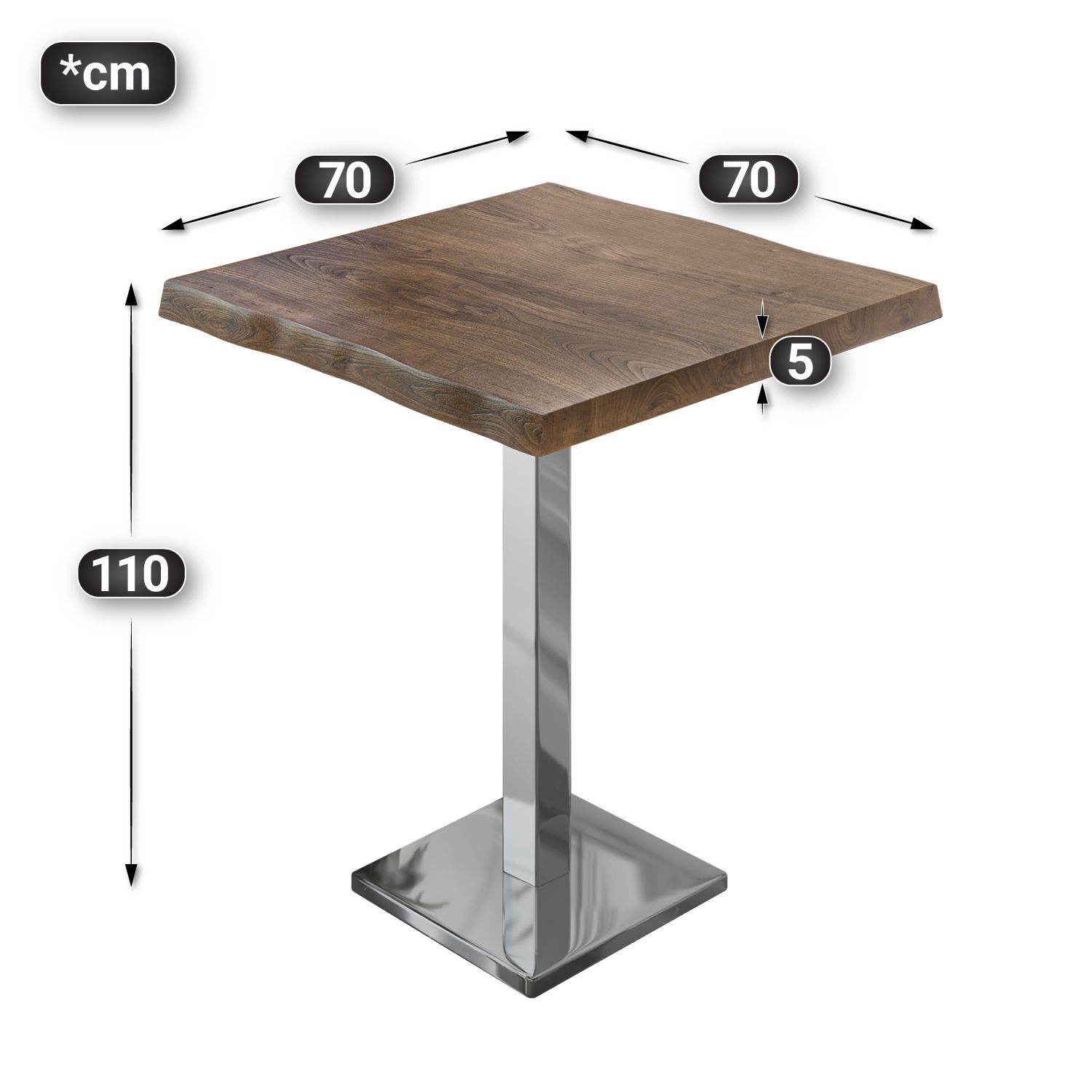 PMD | Bistro Stehtisch Baumkante | B: : 70 x 70 x 110 cm | Walnuß / Edelstahl | Qua