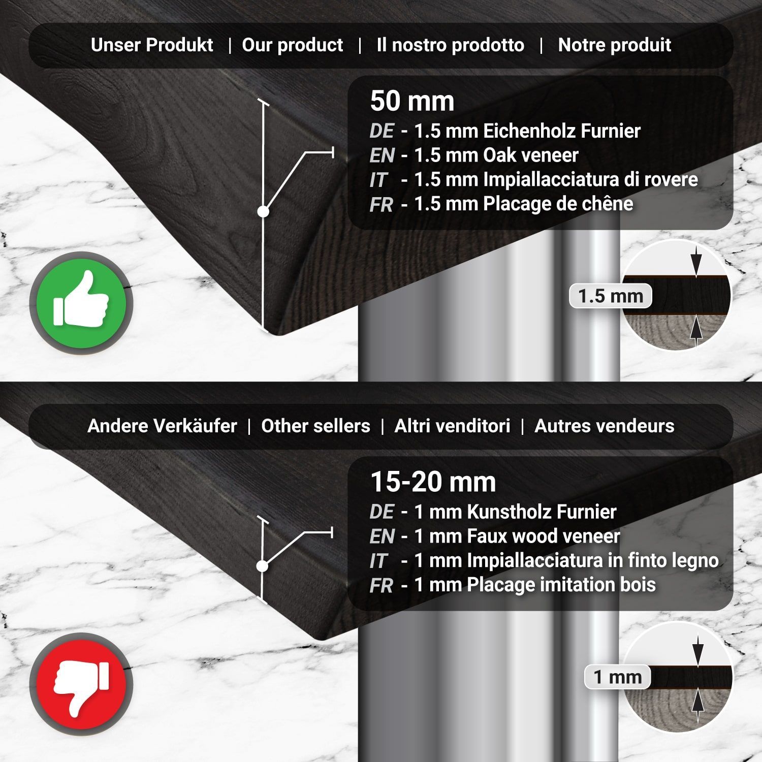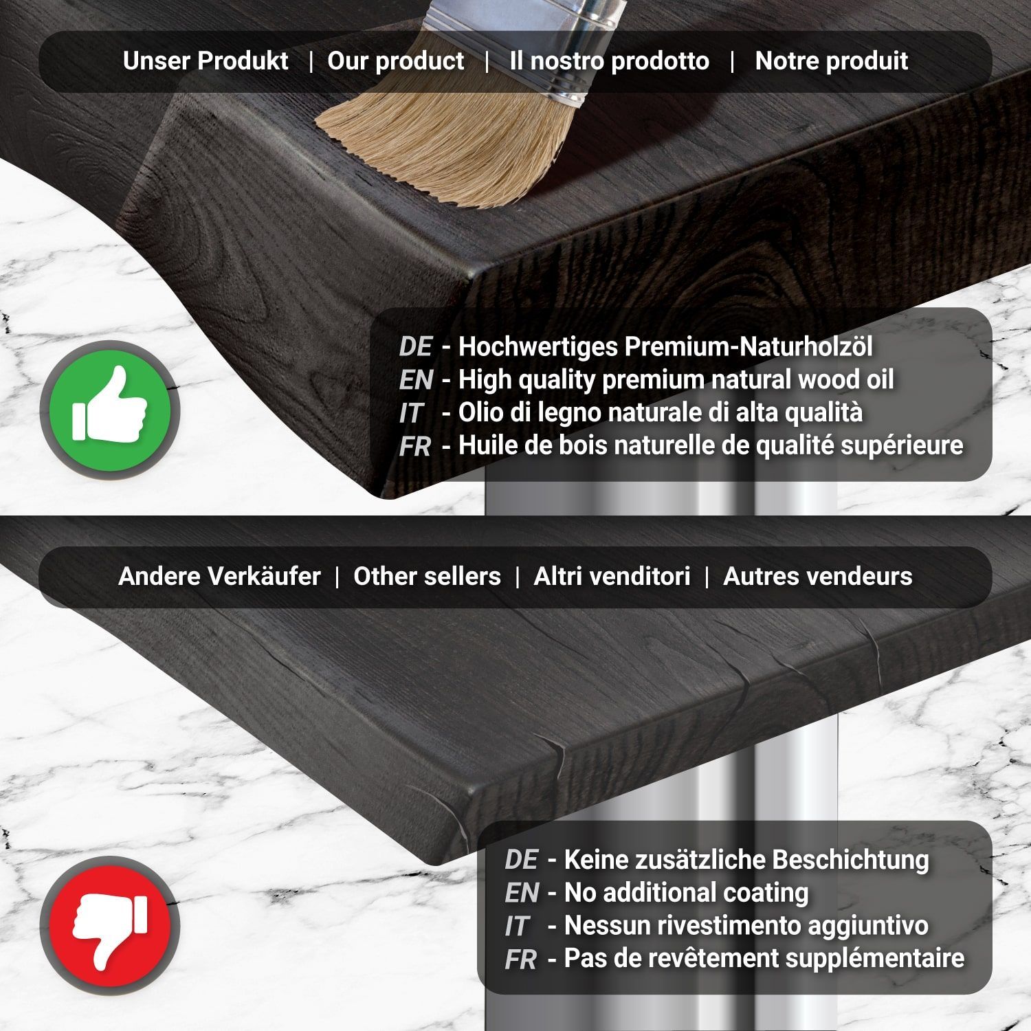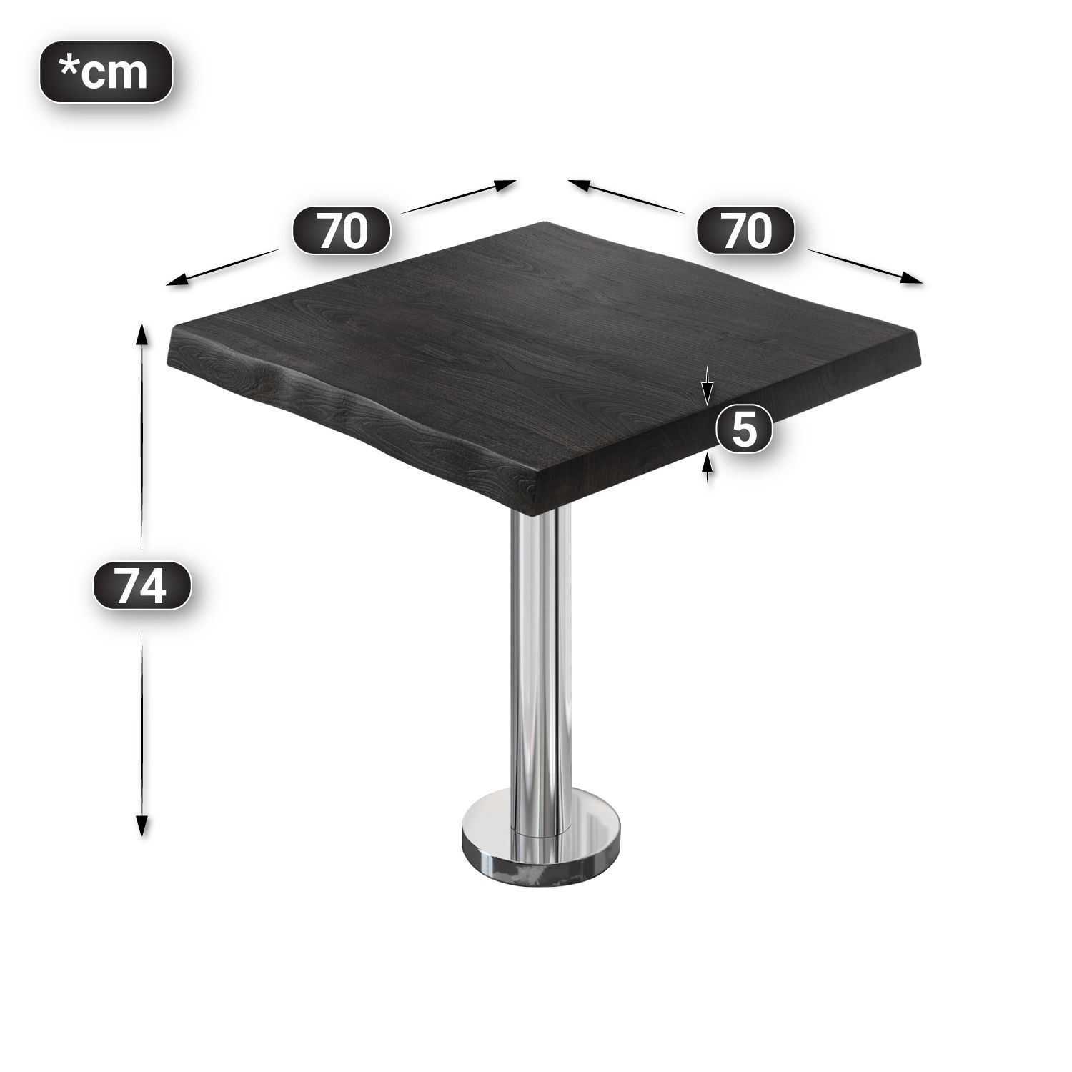 PML | Bistro Baumkanten Tisch | Quadratisch | 70 x 70 x 77 cm | Wenge Schwarz / Edel