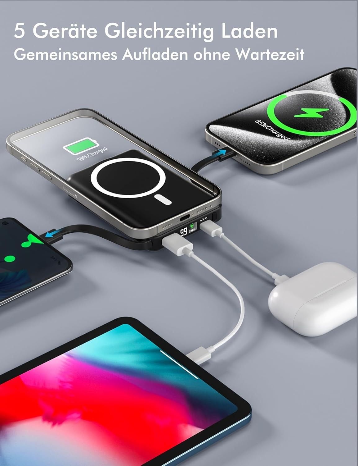 Podoru for Magsafe Powerbank, 10000mAh Magnetische Wireless Power Bank mit USB-C Kabe