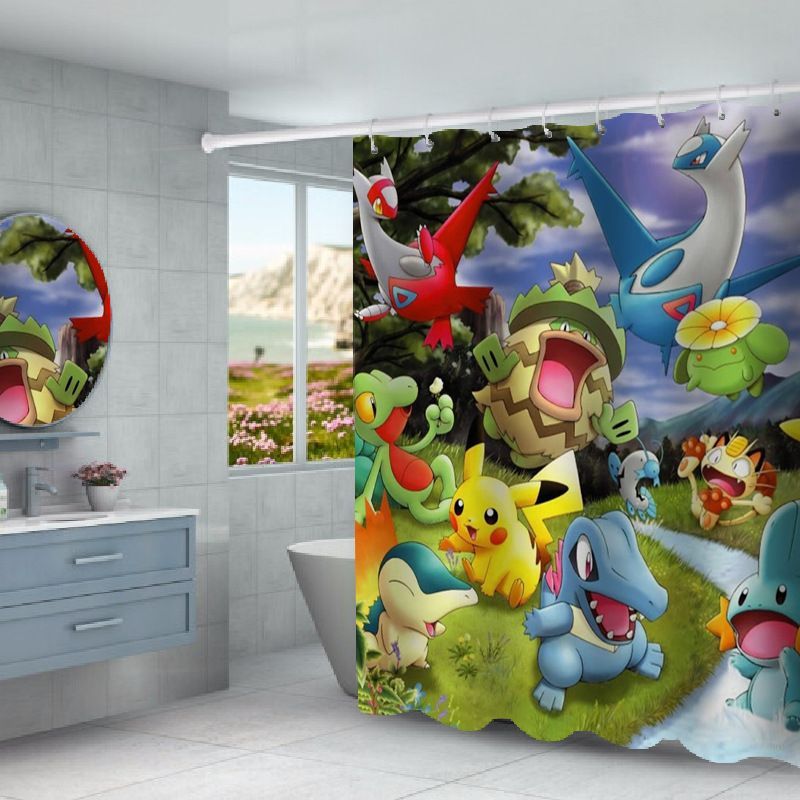 Pokémon Pikachu Duschvorhänge Treecko Badezimmer Vorhang Shower Curtain mit 12 Ringen