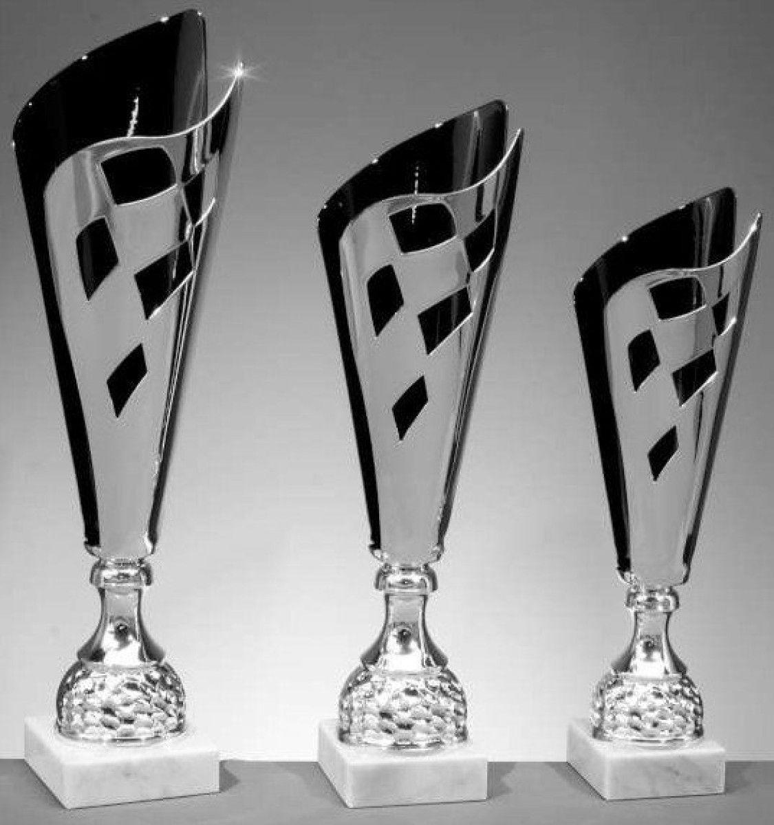 Ein silberner und schwarzer Pokal mit Mamoursockel. Der Pokal inklusive Sockel ist erhältlich ca. in den höhen 48 / 43 oder 38 cm. Der Sockel hat bei einer höhe von 48 cm ca. die Maße von 10 x 3. Der Sockel hat bei einer höhe von 43 cm ca. die Maße von 9 x 3. Der Sockel hat bei einer höhe von 38 cm ca die Maße von 8 x3.
