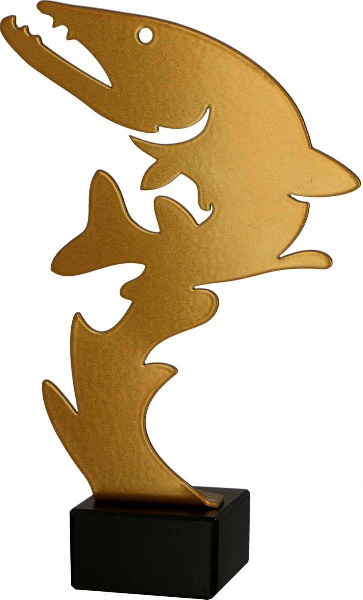 Pokalfigur Fisch in gold aus Metall