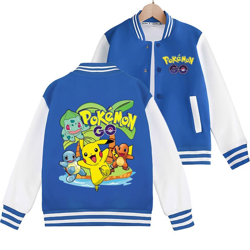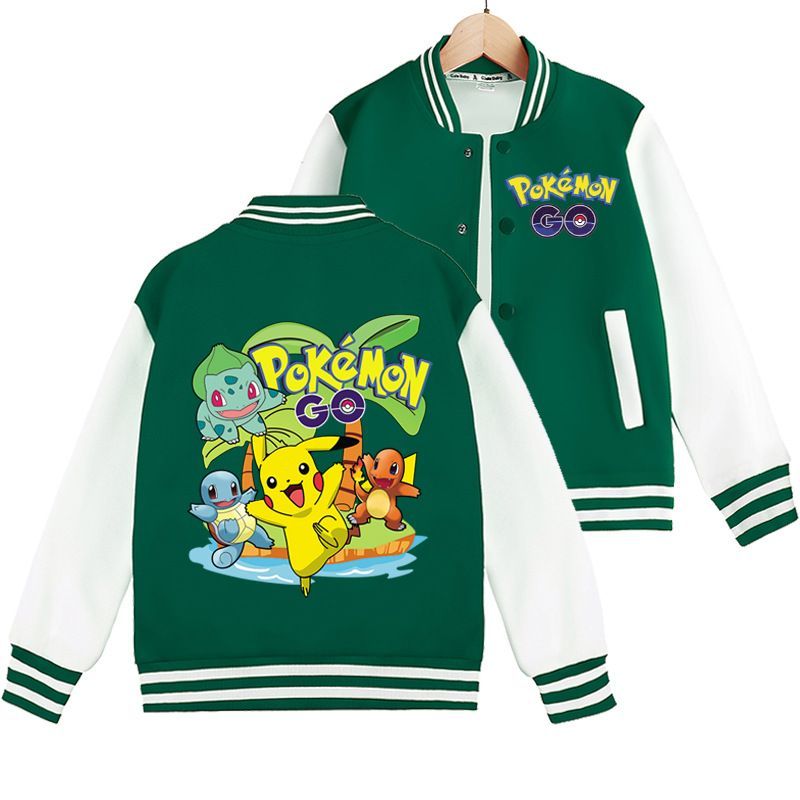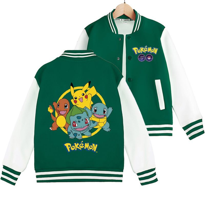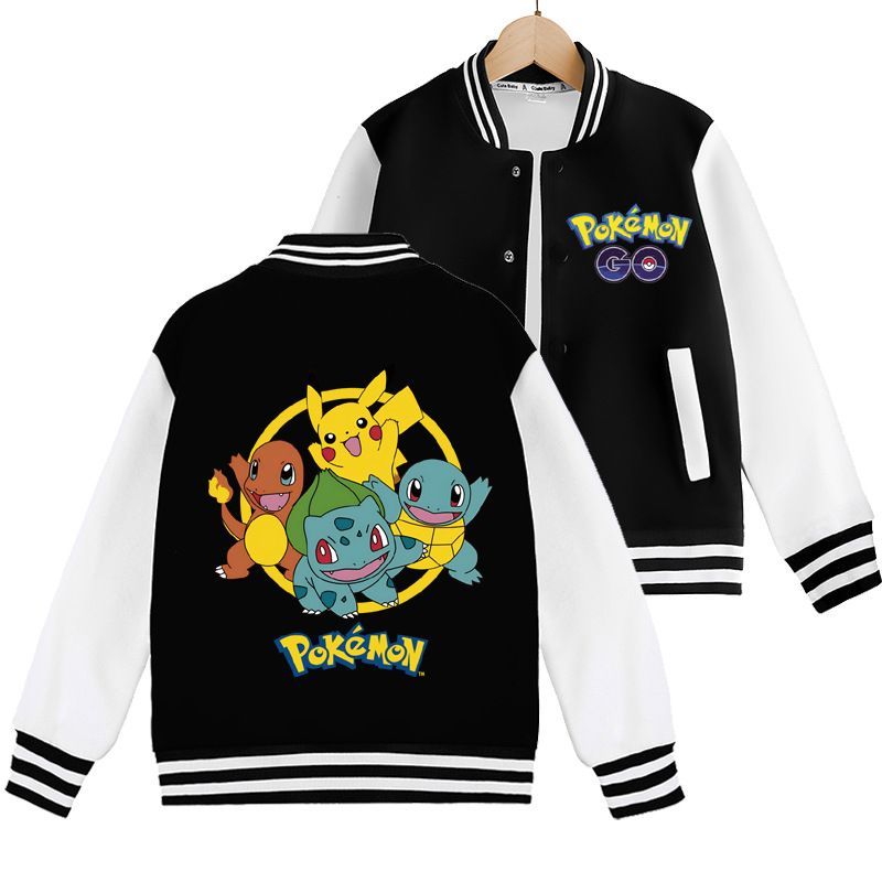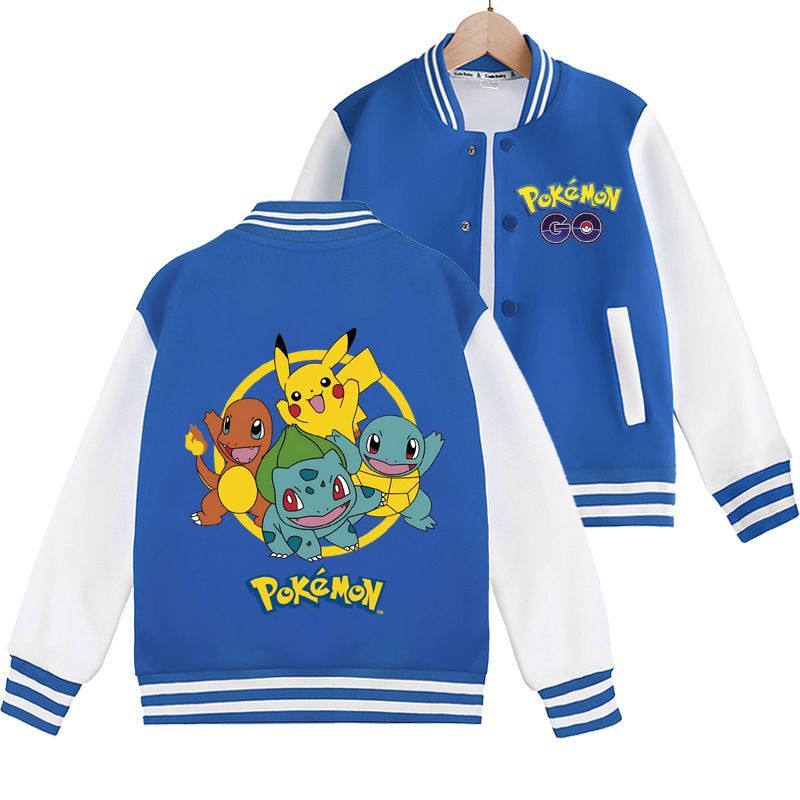 Pokemon Ball Pikachu Baseballjacke Squirtle Student Bomberjacke Kinder Preppy Jacke
