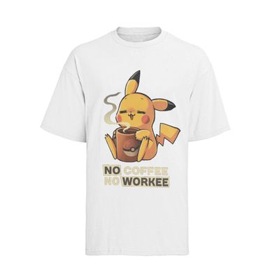 Bio Baumwolle Damen T-Shirt Oversize Pokémon Pikachu "No Coffee, No Workee