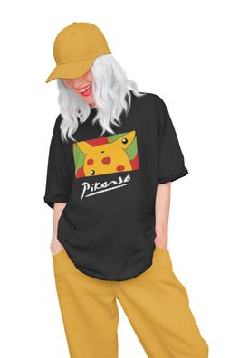 Bio Baumwolle Damen Oversize Anime Pokemon One Piece Parodie Monkey D. Luffy