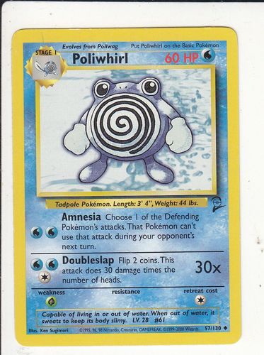 873) Pokemon Karte 57 130 englisch Non Holo Poliwhirl Amnesia Doubleslap 1999-2000 Zustand: Siehe Original-Foto – Die Versandkosten trägt der Käufer - Das Risiko des Verlustes bzw. der Beschädigung gehen bei unversichertem Versand zu Lasten des Käufers – Versandkosten weltweit bitte erfr