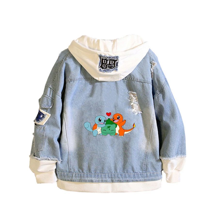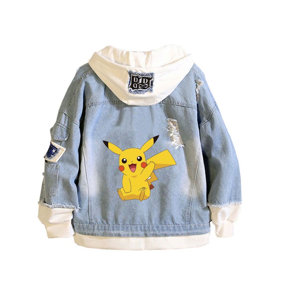 Pokemon Pikachu Jeansjacke Mantel Ketchum Squirtle Sweatshirt Cosplay Kapuze Hoodie