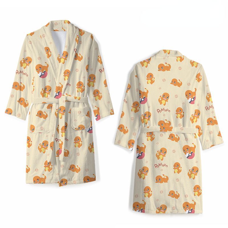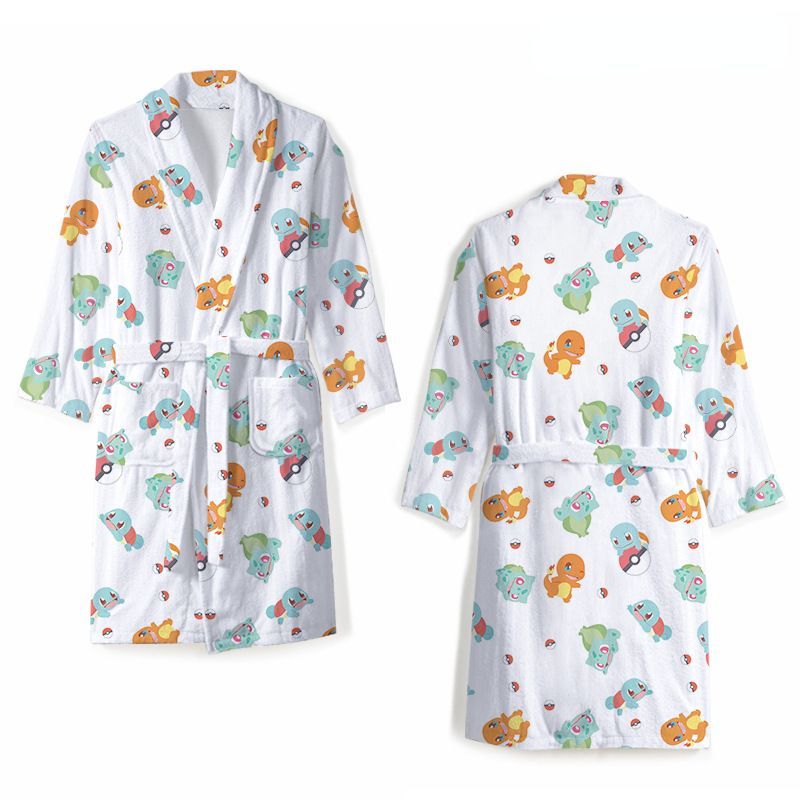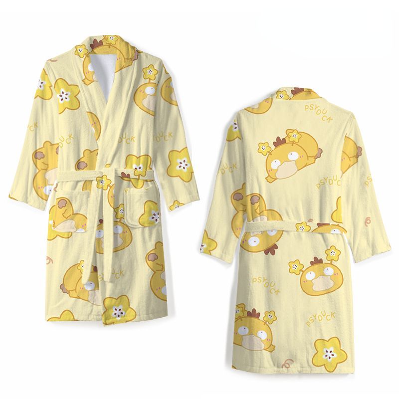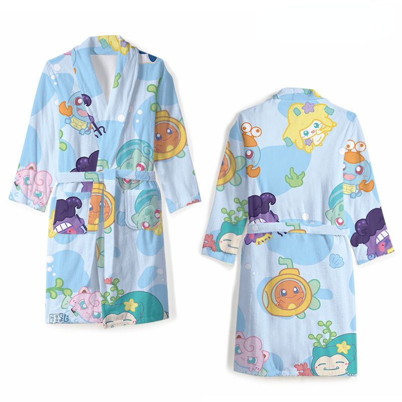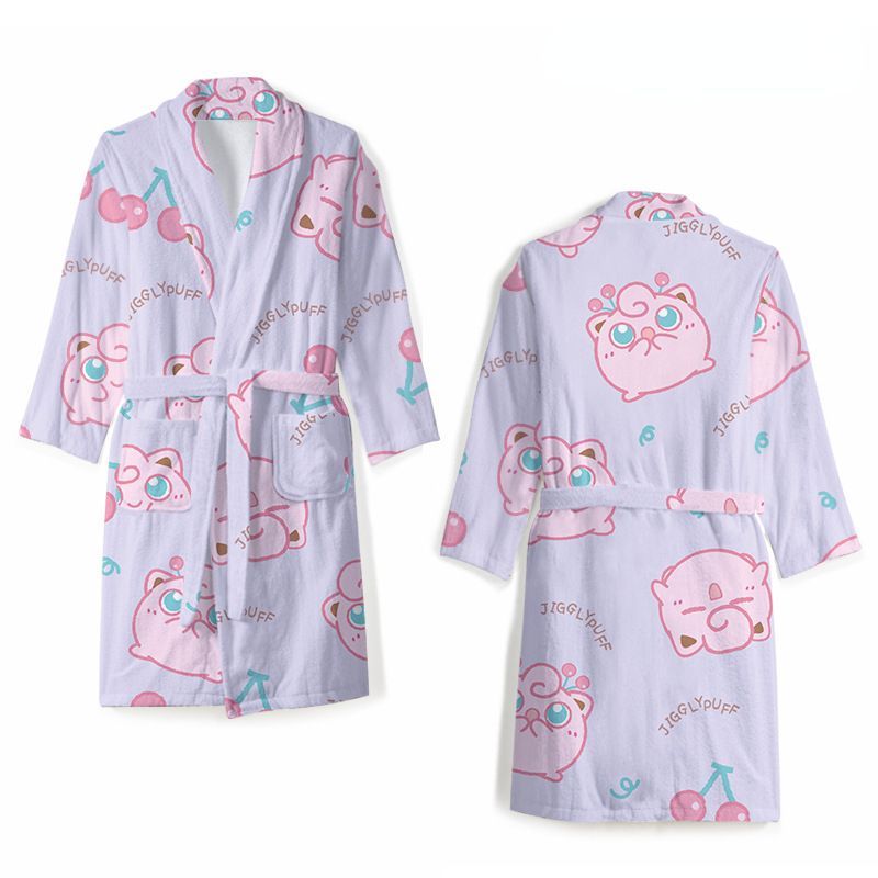 Pokémon Pikachu Pajamas Pikachu Psyduck Jigglypuff Nachthemd Warm Paar Robe mit Bund