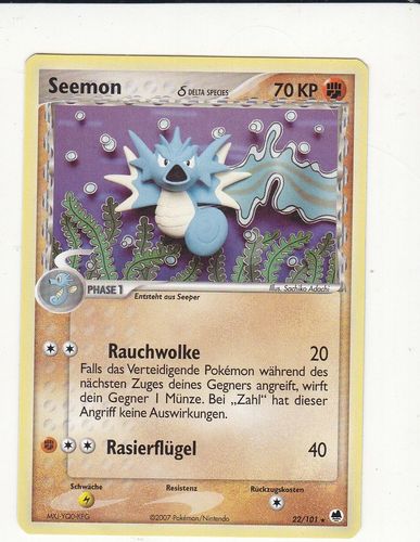Pokémon Pokemon Karte deutsch 22/101 Seemon Rauchwolke Rasierflügel 2007