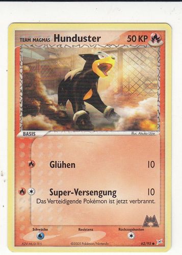 731) Pokémon Pokemon Karte deutsch 62 95 Hunduster Glühen Super-Versengung 2005 Zustand: Siehe Original-Foto – Die Versandkosten trägt der Käufer - Das Risiko des Verlustes bzw. der Beschädigung gehen bei unversichertem Versand zu Lasten des Käufers – Versandkosten weltweit bitte
