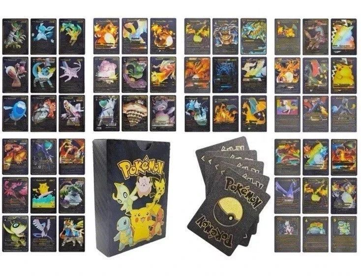 Pokemon Karten 165 Karten Gold Schwarz Silber TCG Vmax Gx Dx Metall Optik