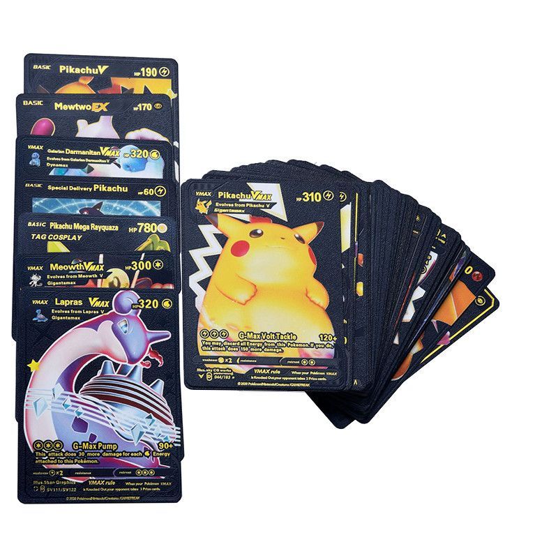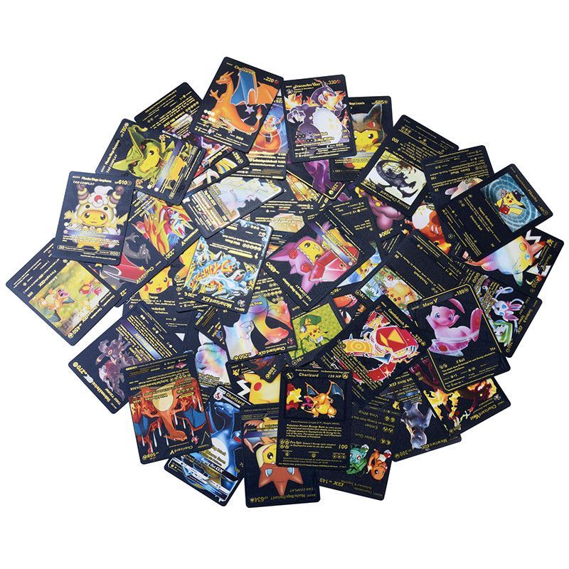 Sie kaufen hier Schwarz Gold Metall Optik Karten Pokemon. Englische, Spanisch und Deutsche Versionen Keine Wiederholen Karte Karte größe: 6.3*8,8 cm Material: Die Schwarzgold folie Sprache: Englisch, Spanisch, Detusch Die Auswahl wird von mir gemacht!!!