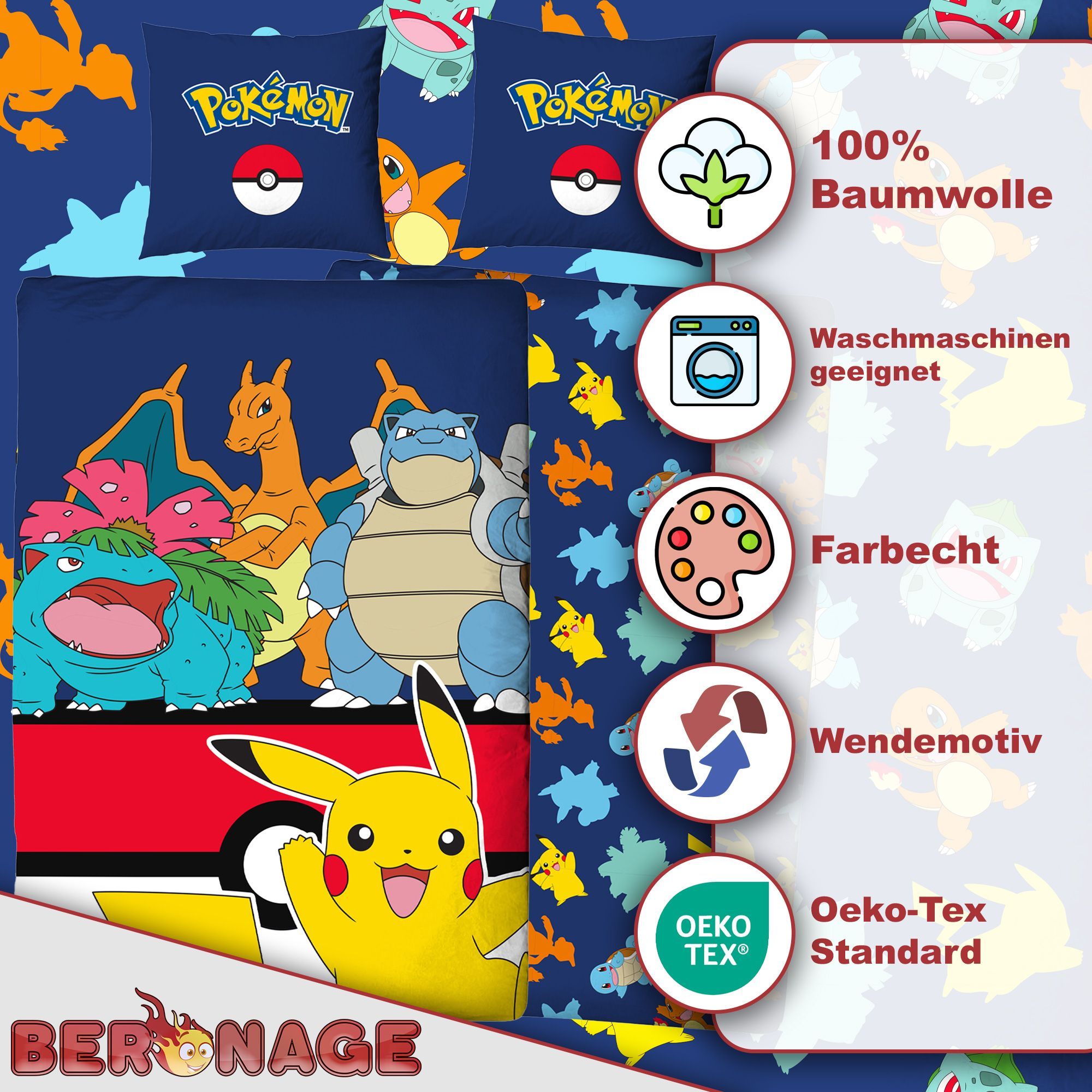 Pokemon Wende-Bettwäsche Pikachu 135x200cm + 80x80cm 100% Baumwolle Renforcé-Linon