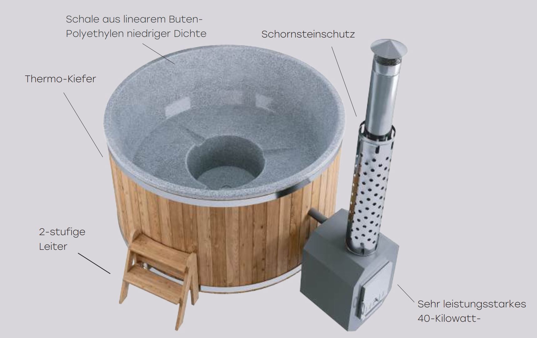 Polar Spa HotTub Comfort 190 HOT LDPE & Thermokiefer | 40kw Ofen | Treppe | Cover