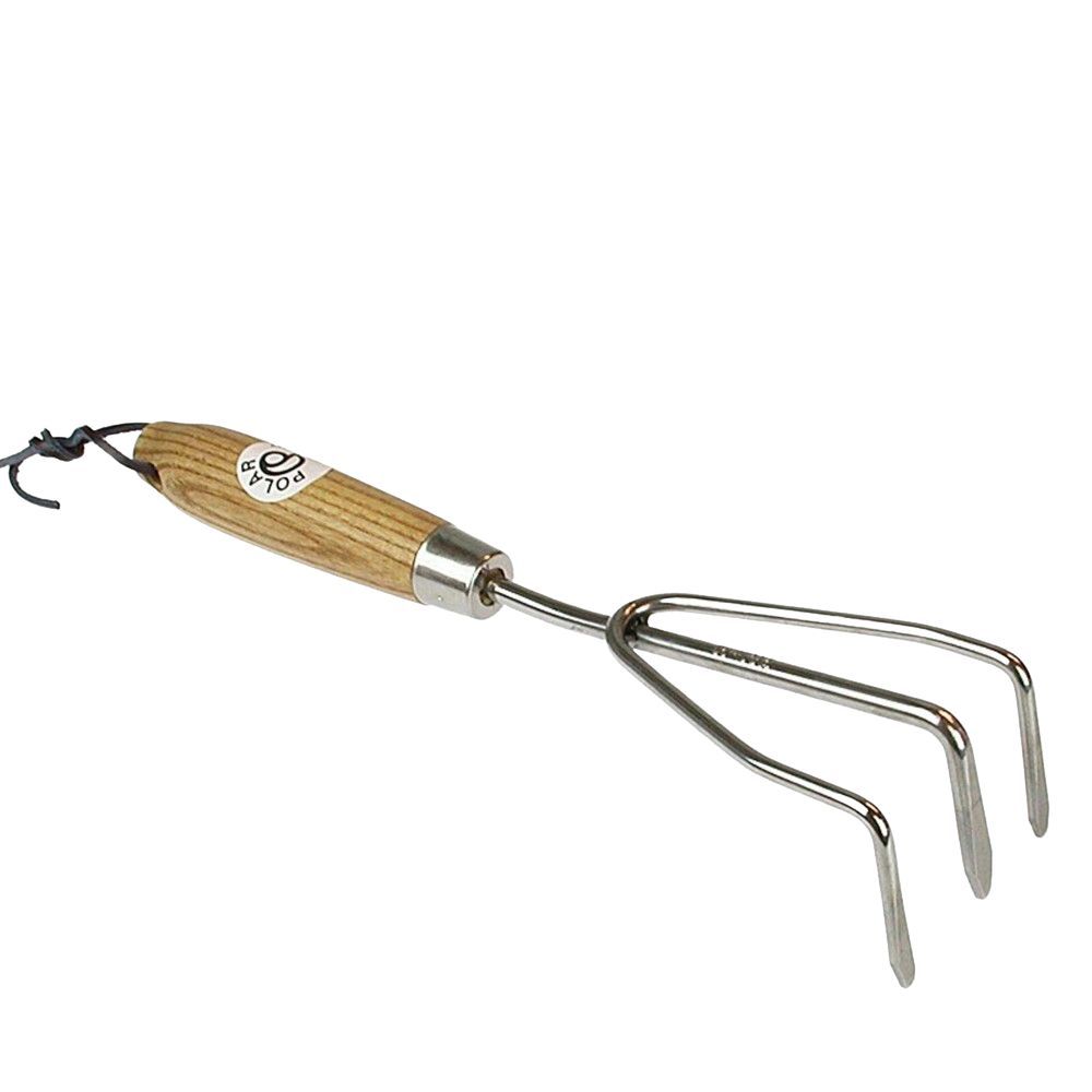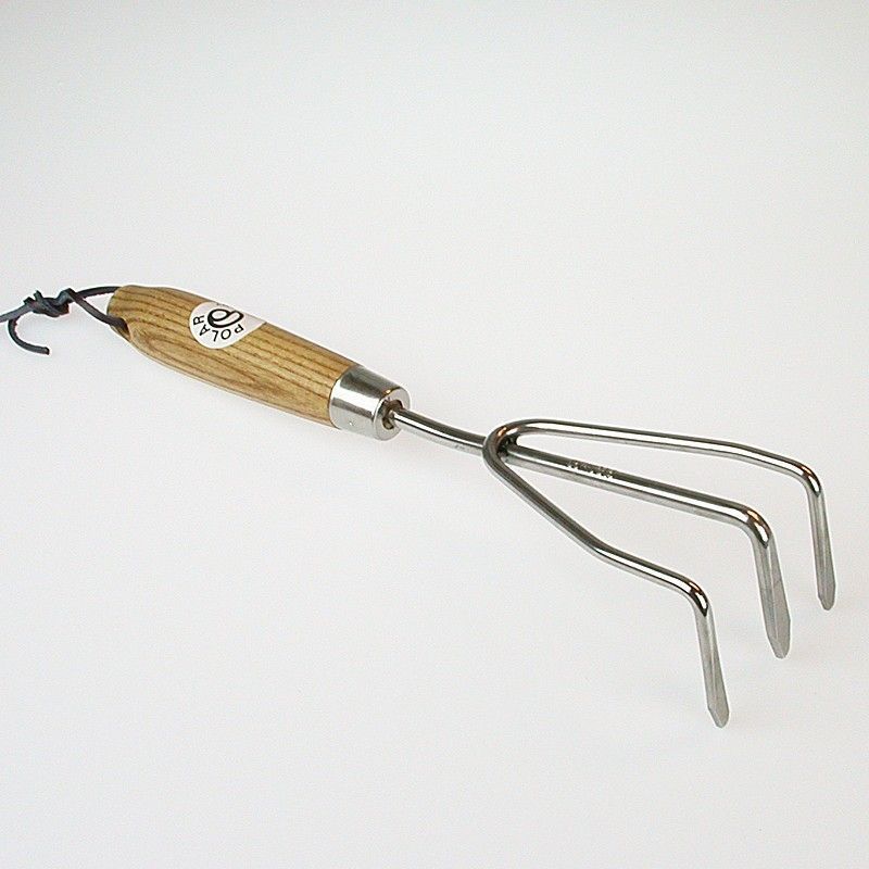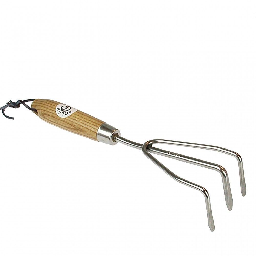 Polar T341442 kleine Edelstahl Harke 8 cm breit mit Holzstiel für enge Ecken