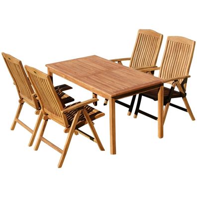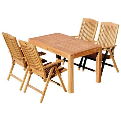 TEAK SET: Gartengarnitur Alpen Tisch 150x80 cm + 4 Tobago Sessel Serie JAV