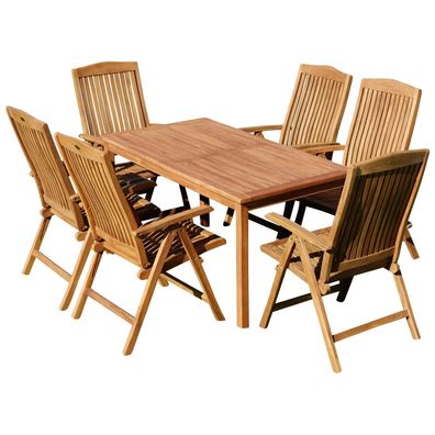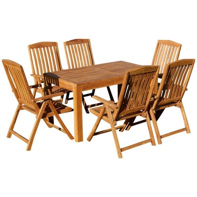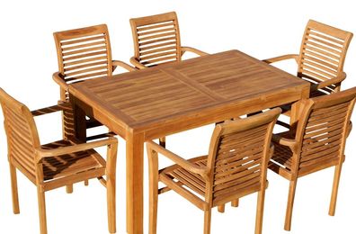 TEAK SET: Gartengarnitur Alpen Tisch 150x80 cm + 6 Tobago Sessel Serie JAV